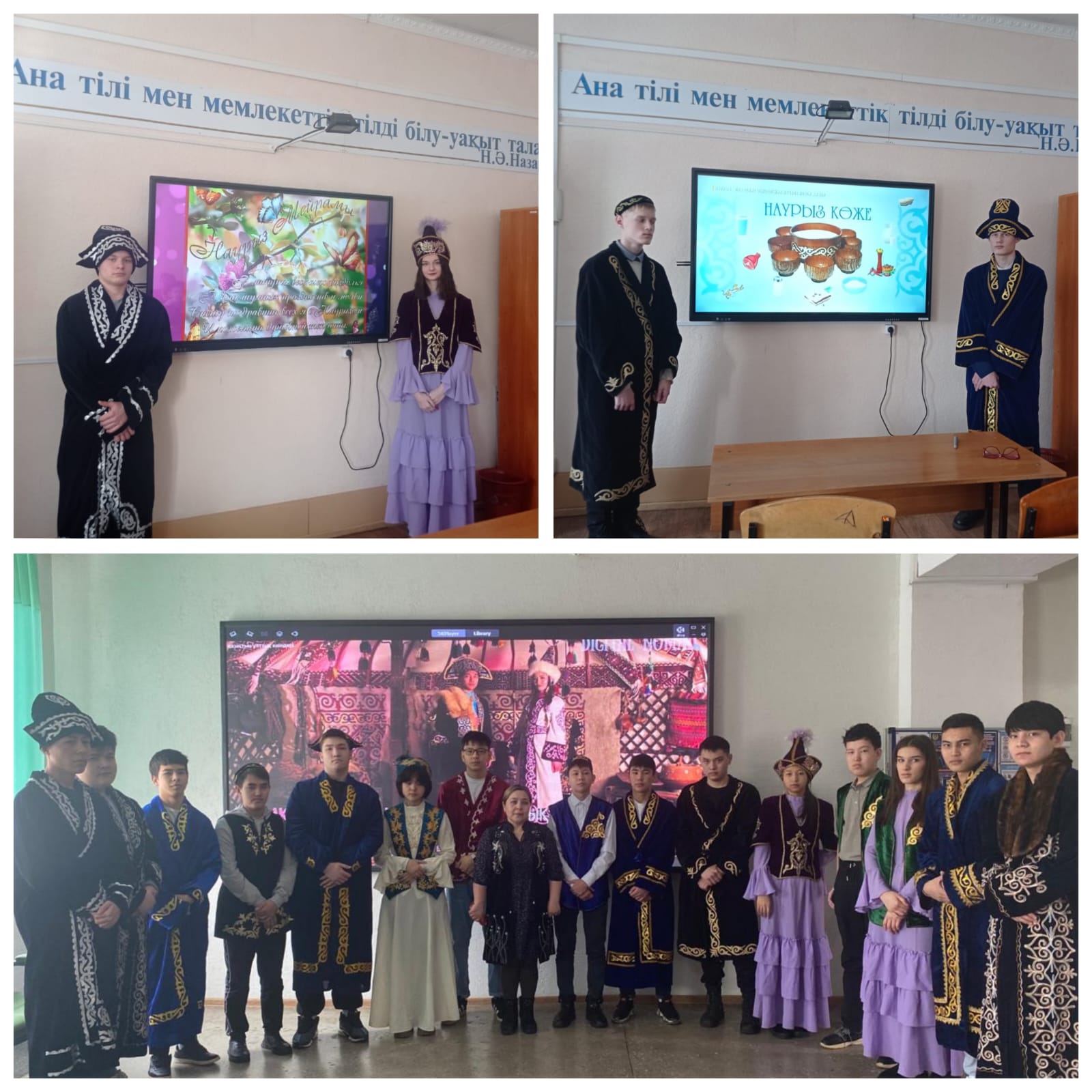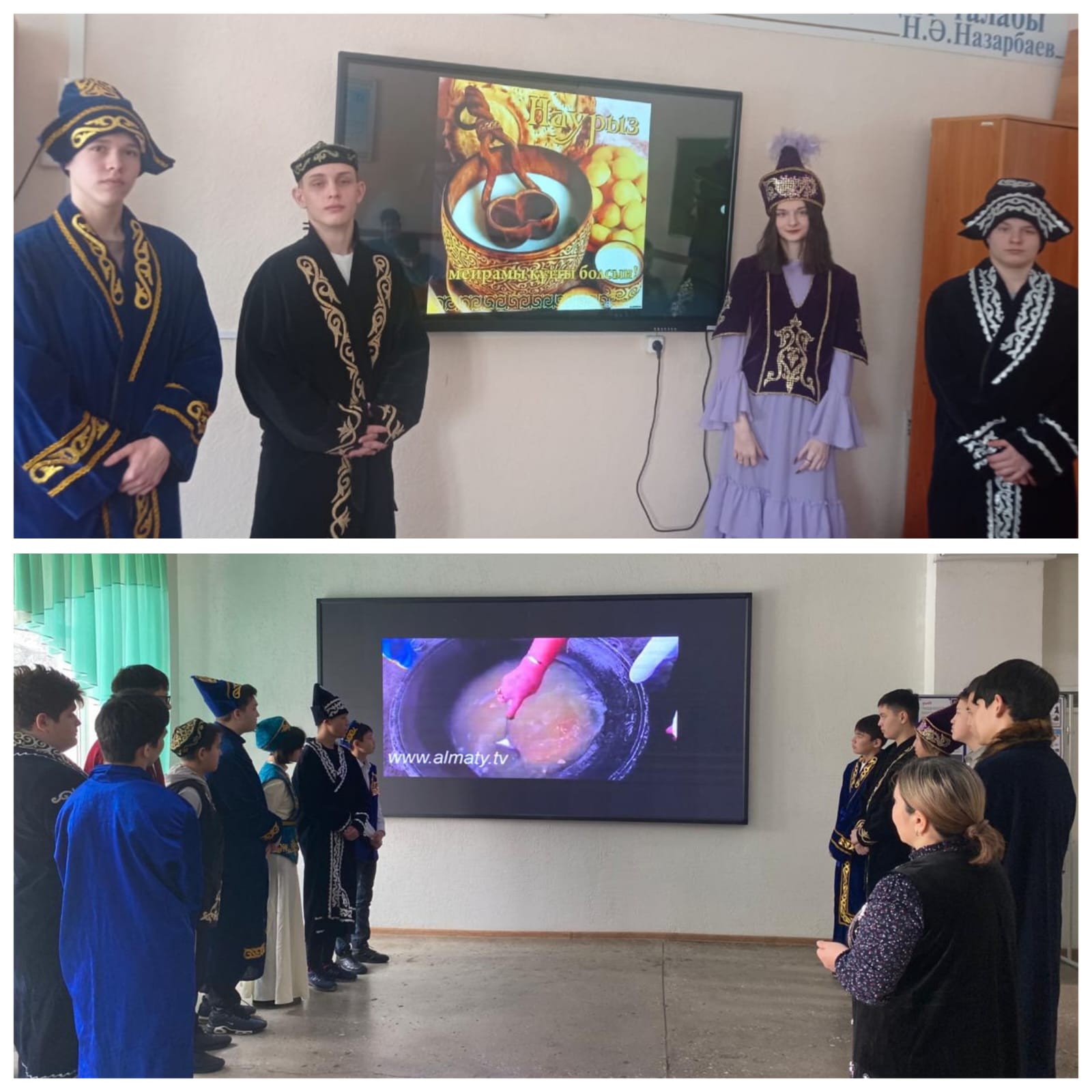 Бейне көріністі өткізу барысында Наурыз мейрамы туралы видео көріністер, слайдтық презентация, «Наурыз тарихы», «Ұлттық тағамдар», «Қазақтың ұлттық киімдері», «Көрісу мейрамы»бейне материалдары көрсетілді. Іс-шара соңында студенттер бейне көріністер бойынша сұрақтарға қызығушылықпен жауап беріп,қазақ халқының салт-дәстүрі,әдет-ғұрпы бойынша білімдерін көрсетті.