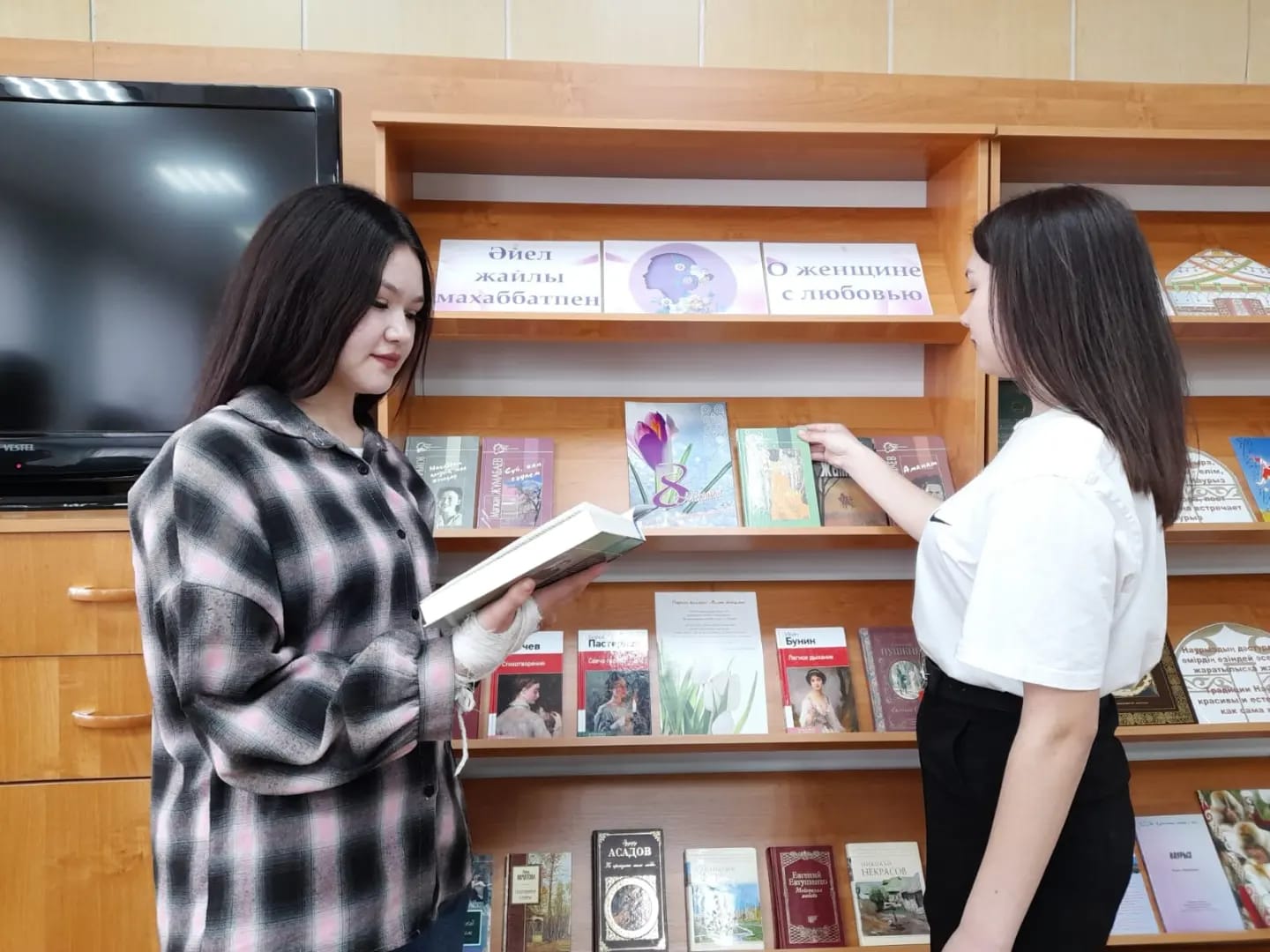 Көктеммен бірге бізге әдемі және керемет мереке-8 наурыз Халықаралық әйелдер күні келіп жетті. Адамзаттың ең жақсы, ең әдемі, ең сүйкімді жартысының мерекесі. Көрмеде ұсынылған кітаптар мерекенің тарихы туралы, ал көрнекті ақындар мен жазушылардың туындылары әйелдер сұлулығы мен сүйкімділігі, бақыт пен үйлесімділік, көктем мен махаббат туралы баяндайды. Күлімдеу мен лирикалық көңіл-күй қыздарға көктемгі тілектер сыйлады.