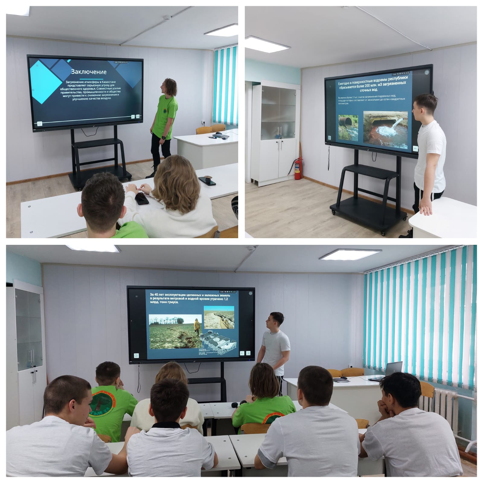 Іс-шараға student Parliament Club экология және еңбек фракциясының студенттері қатысты. Әңгіме барысында балалар Қазақстанның экологиялық мәселелері мен оларды шешу жолдарын талқылады. 1 курс студенттері Борсук Даниил, Шмелев Вадим және Авдеев Артем ауаның, су және жер ресурстарының ластануына байланысты экология мәселелері туралы айтып берді.