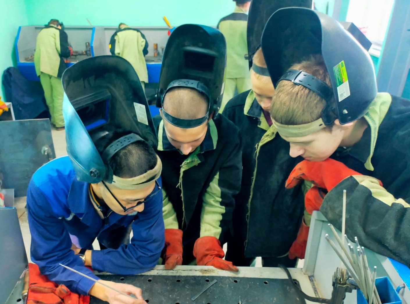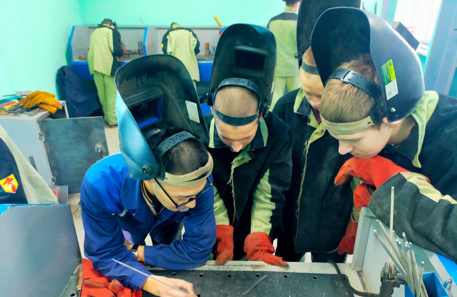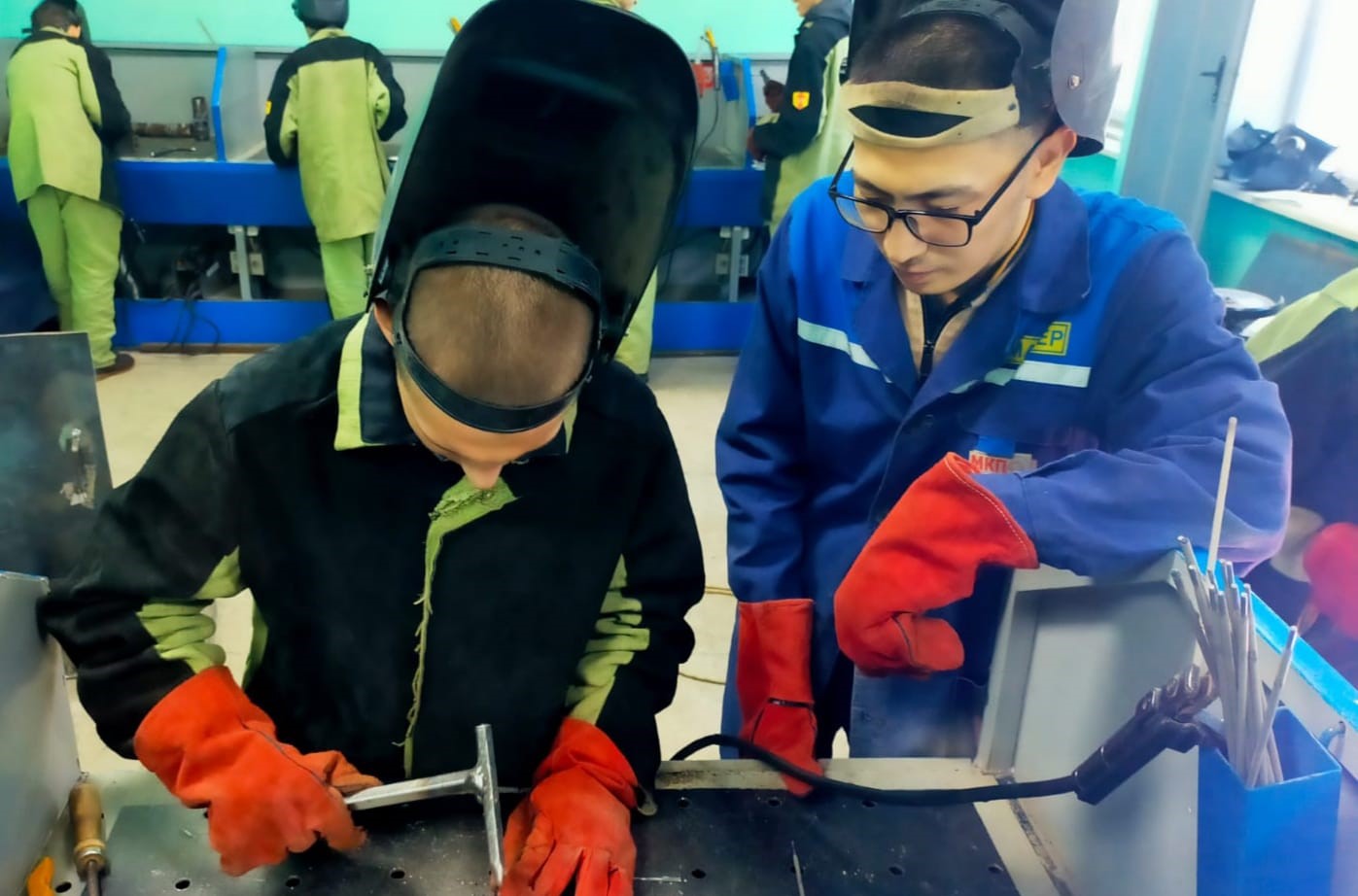 Студенттер төменгі қалыпта балқытылған жабық электродпен бөлшектердің түйіспелі қосылыстарын қолмен доғалық дәнекерлеу дағдыларын үйренді. Дәнекерлеу қалыңдығы 4 мм болат пластиналарды қолдана отырып, диаметрі 3 мм МР-3 маркалы электродтармен жүргізілді.