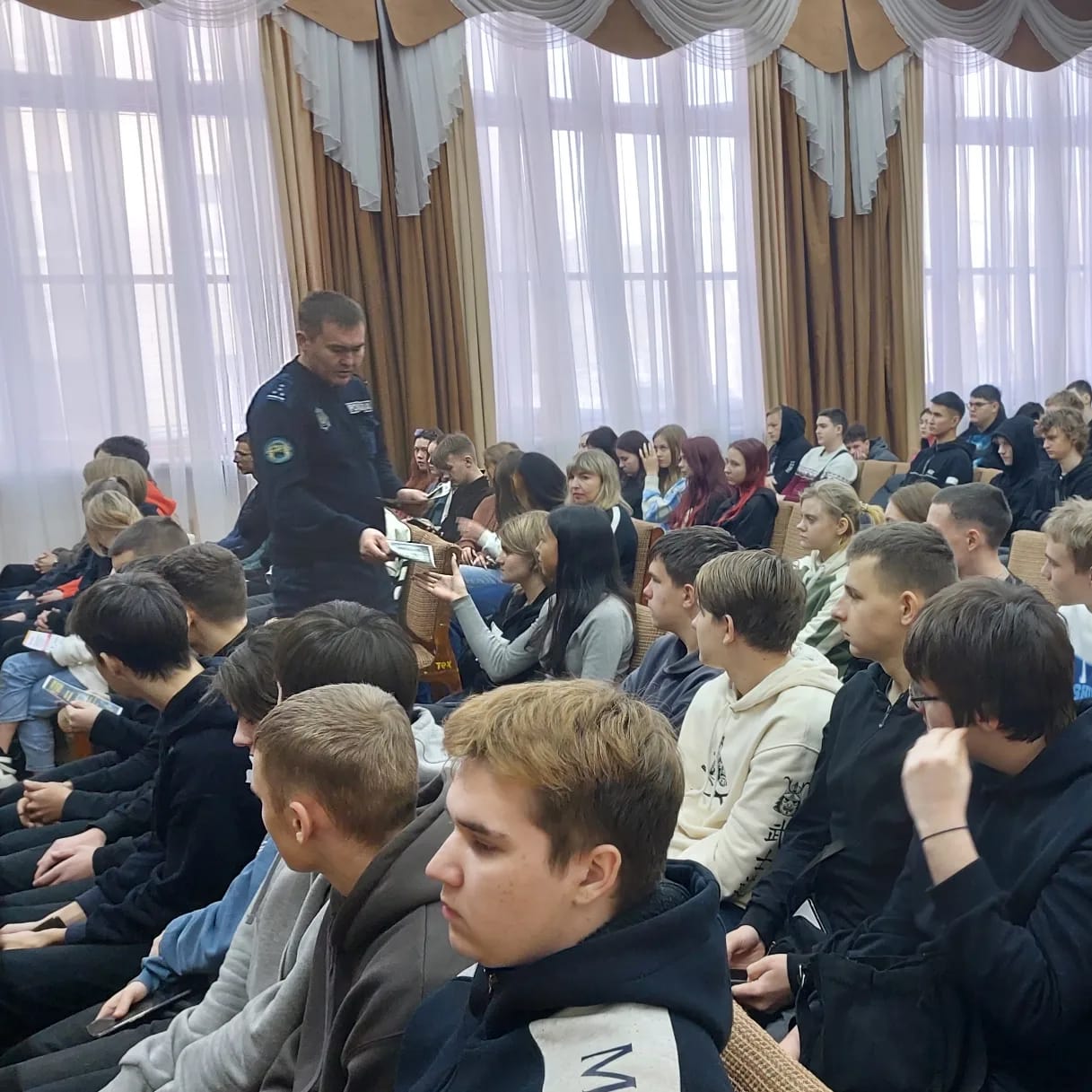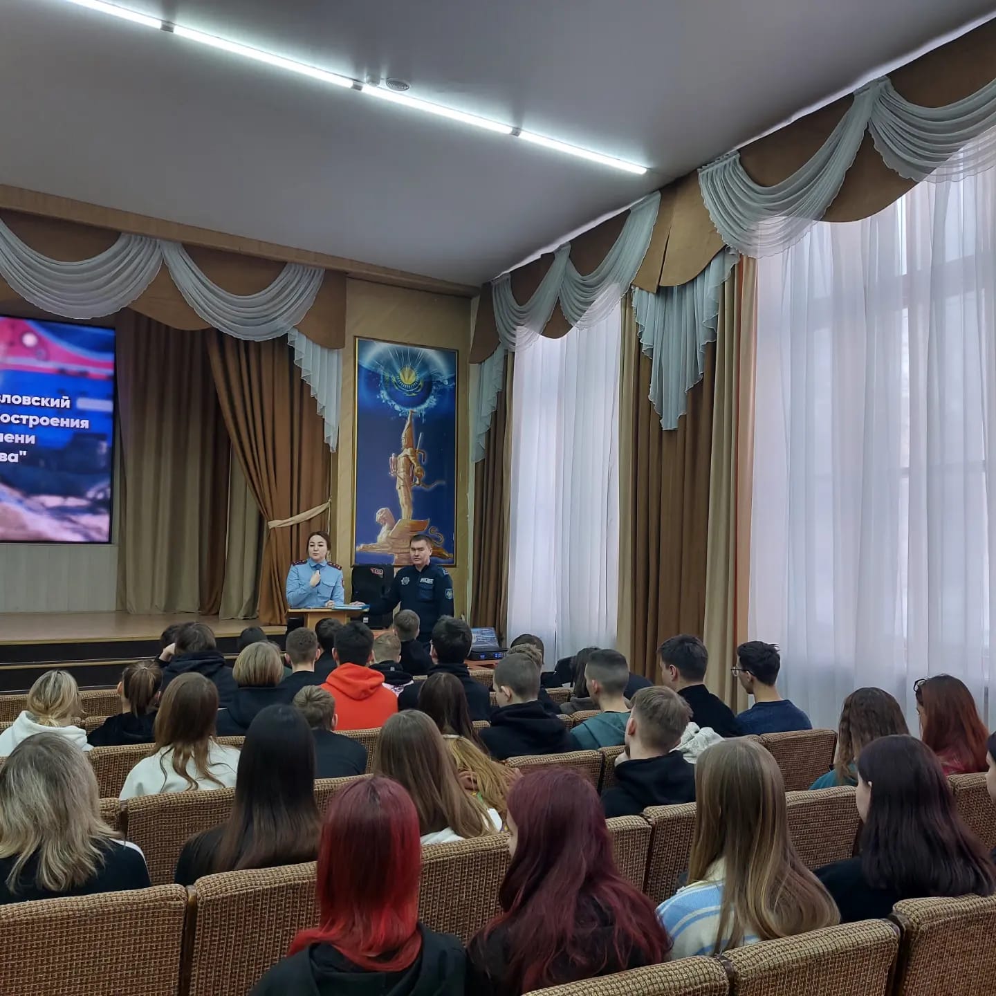 2023 жылғы 12 қаңтарда Байкен Әшімов атындағы Петропавл машина жасау және көлік колледжінің акт залында студенттердің Петропавл қ. ПБ екінші ПБ ЖПҚБ бастығының орынбасары полиция капитаны Д.К.Темиртасовпен және криминалдық полиция бөлімінің жедел уәкілі Ж.Б.Бейсембинамен кездесуі өтті. Полиция қызметкерлері заманауи алаяқтықтың жолдары мен түрлері, сондай-ақ алдаудың алдын алу мүмкіндіктері туралы айтты. Алаяқтардың олжасына айналмас үшін, Сіз әрқашан мұқият болуыңыз керек және кез-келген күмәнді әрекетті жасамас бұрын, достарыңыздан немесе жақындарыңыздан кеңес сұрағаныңыз жөн. Әңгіме барысында телефон алаяқтығына ерекше назар аударылды, күмәнді телефон қоңырауларына сенбеу ұсынылды. Сондай-ақ, іс-шара барысында студенттерге "Интернет-алаяқтықтың құрбаны болмау үшін" буклеттері табысталды, онда алаяқтардың құрбаны болмау жолдары сипатталған. Чубарова Е.Н. – педагог-ұйымдастырушы