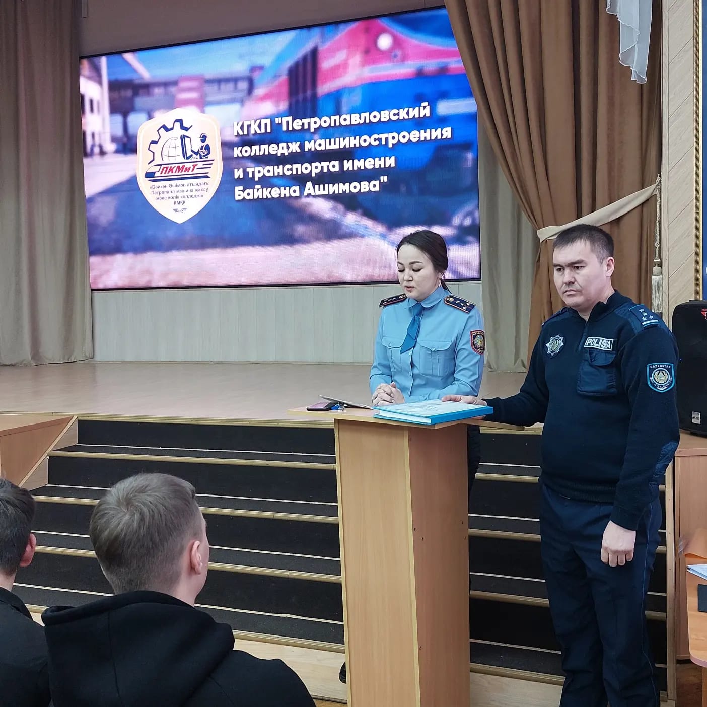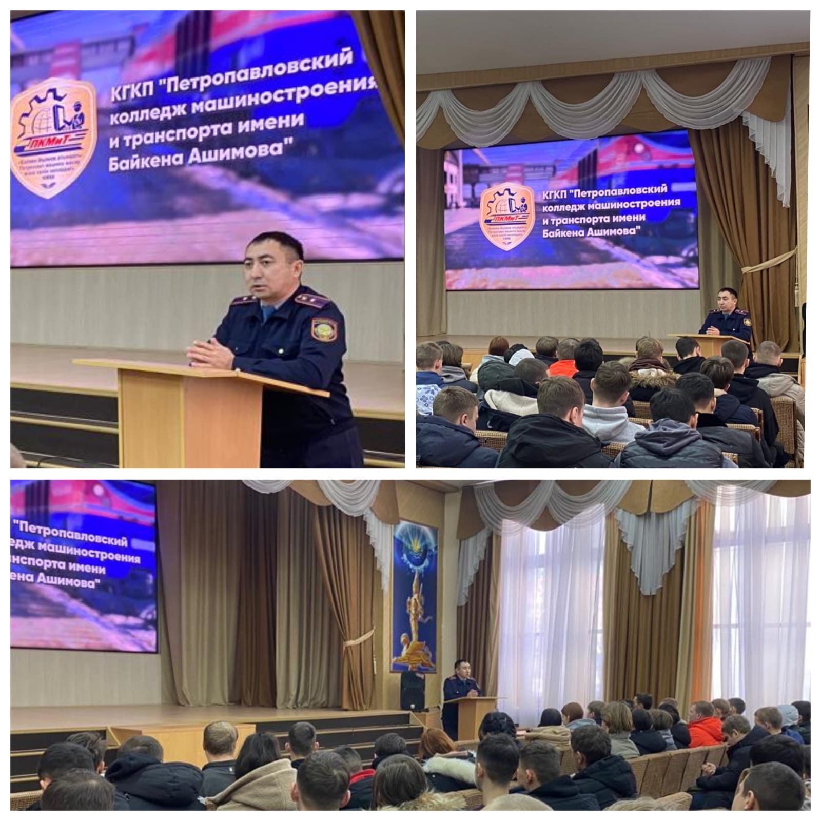 2024 жылдың 17 қаңтарында Б. Әшімов атындағы Петропавл машина жасау және көлік колледжінде СҚО мамандандырылған күзет қызметі басқармасының тәрбие және кадр жұмысы бөлімінің бастығы Е.Н.Нурушевпен кездесу өтті. Студенттерге ІІО-дағы қызметі және полиция батальоны лауазымына үміткерлерге қойылатын талаптар туралы айтылды.