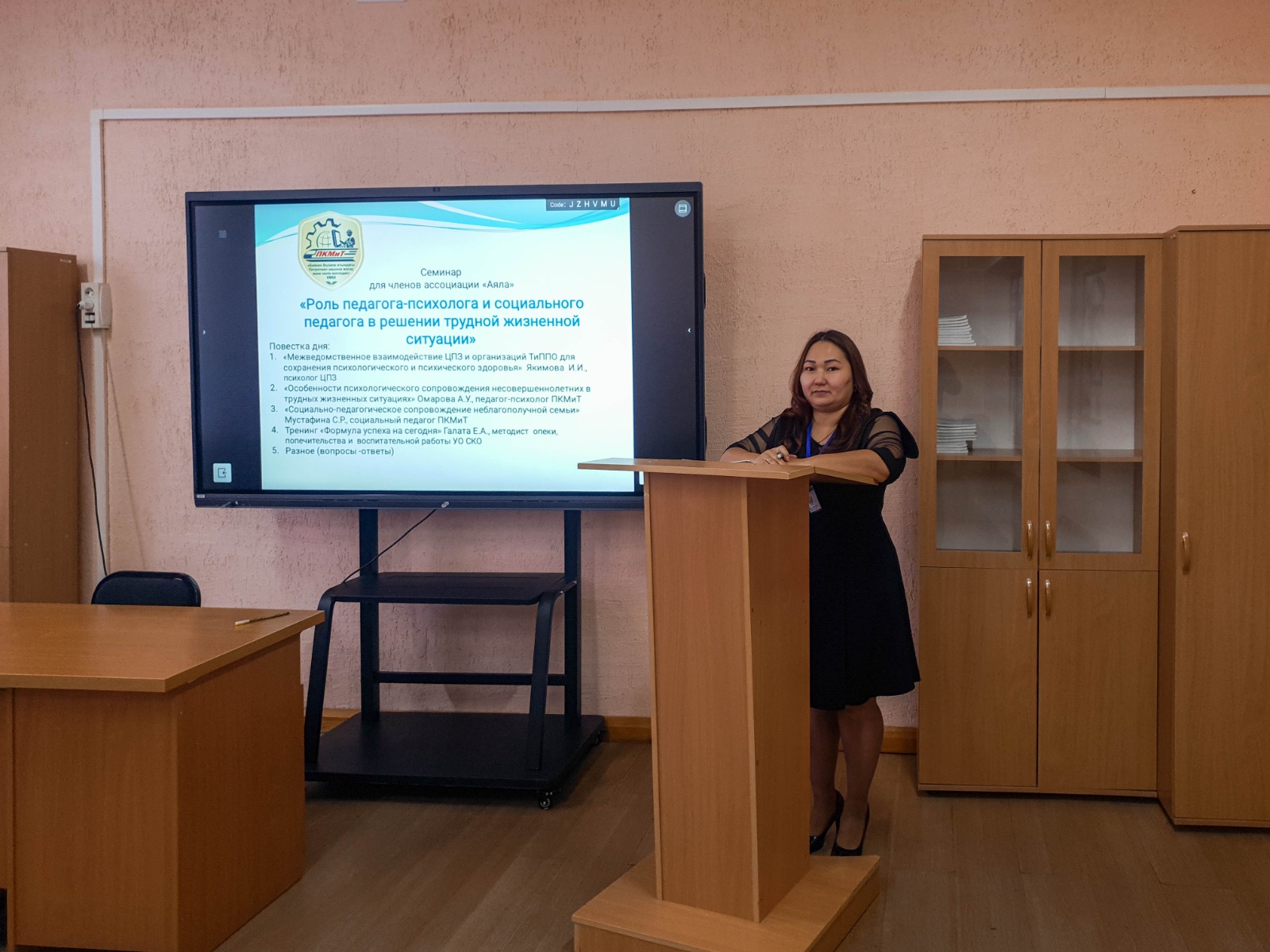 ПМЖКК педагог-психологы А.У.Омарова "Өмірлік қиын жағдайларда кәмелетке толмағандарды психологиялық сүйемелдеу ерекшеліктері" тақырыбында баяндама жасады. Қолайсыз отбасын әлеуметтік-педагогикалық сүйемелдеуді ПМЖКК әлеуметтік педагогы С.Р.Мустафина нақты мысалдармен атап өтті.