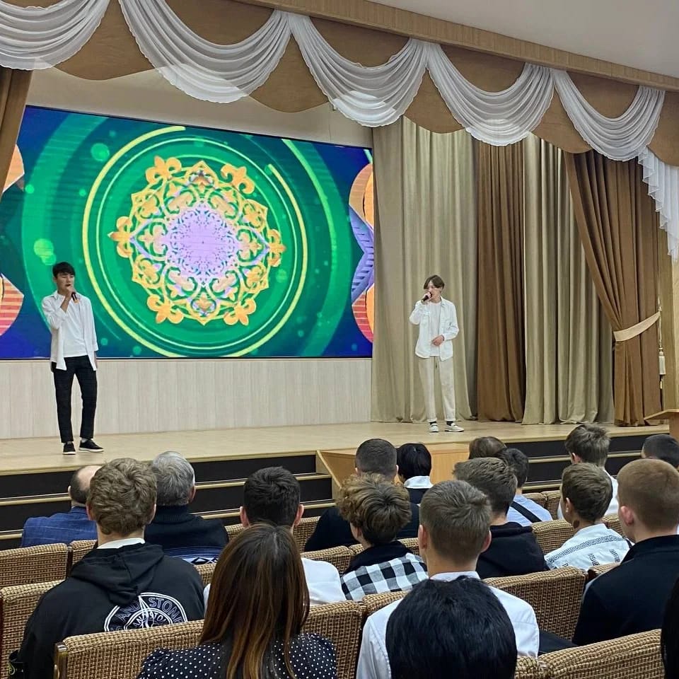 Сахнада 1 курс студенттері Манжанов Алмас пен Примкулов Мадияр "Мен қазақпын" әнімен, көркемдік жетекші В.В.Лопухов және 2 курс студенті Евгений "Родина моя" әнімен, М. Қозыбаев атындағы СҚУ студенті Щербинина Анжела "Атамекен" әнімен және Оксана Владимировна Бодаренко жетекшілігімен "Бұлақтар" би ансамблі өнер көрсетті, оның құрамына 2 курс студенті Афонкин Никита кіреді.