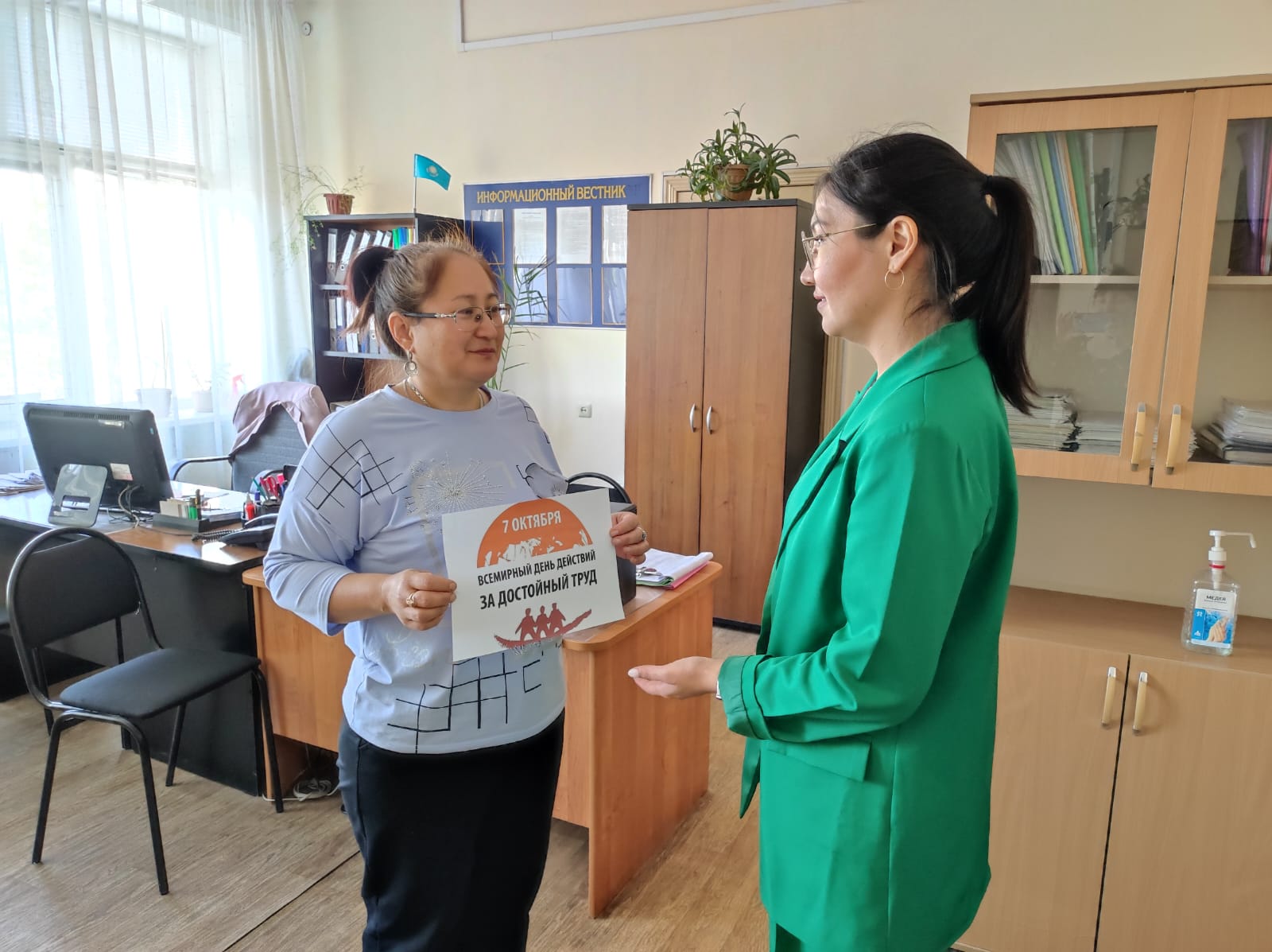 Ақпараттық-түсіндіру компаниясы шеңберінде алғашқы кәсіподақ ұйымының төрағасы Б.Р.Қалықовамен және техникалық инспектор А.Б.Әубакирмен бірлесіп жұмыскерлердің еңбек жағдайларының еңбекті қорғау талаптарына сәйкестігін, сондай-ақ жұмыскерлердің жеке қорғану құралдарымен қамтамасыз етілуін тексеру мақсатында жұмыс орындарына мониторинг жүргізілді