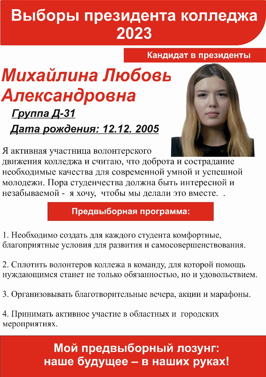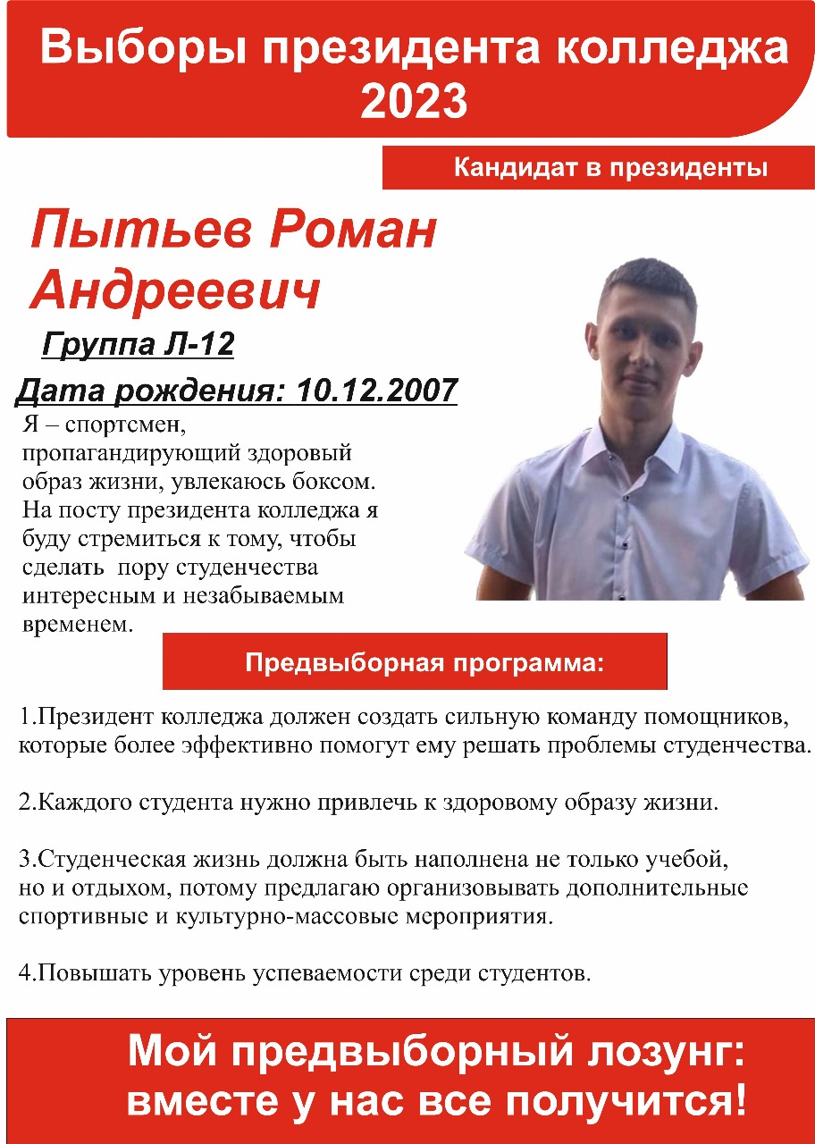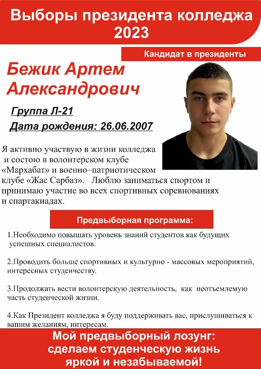 2023 жылғы 11 қазанда Байкен Әшімов атындағы Петропавл машина жасау және көлік колледжінің президенті сайланады. 1-3 курс студенттерінен үміткерлер ұсынылды. Сайлау онлайн форматта өтеді. Дауыс беруге колледж студенттері мен педагогтары қатысады.