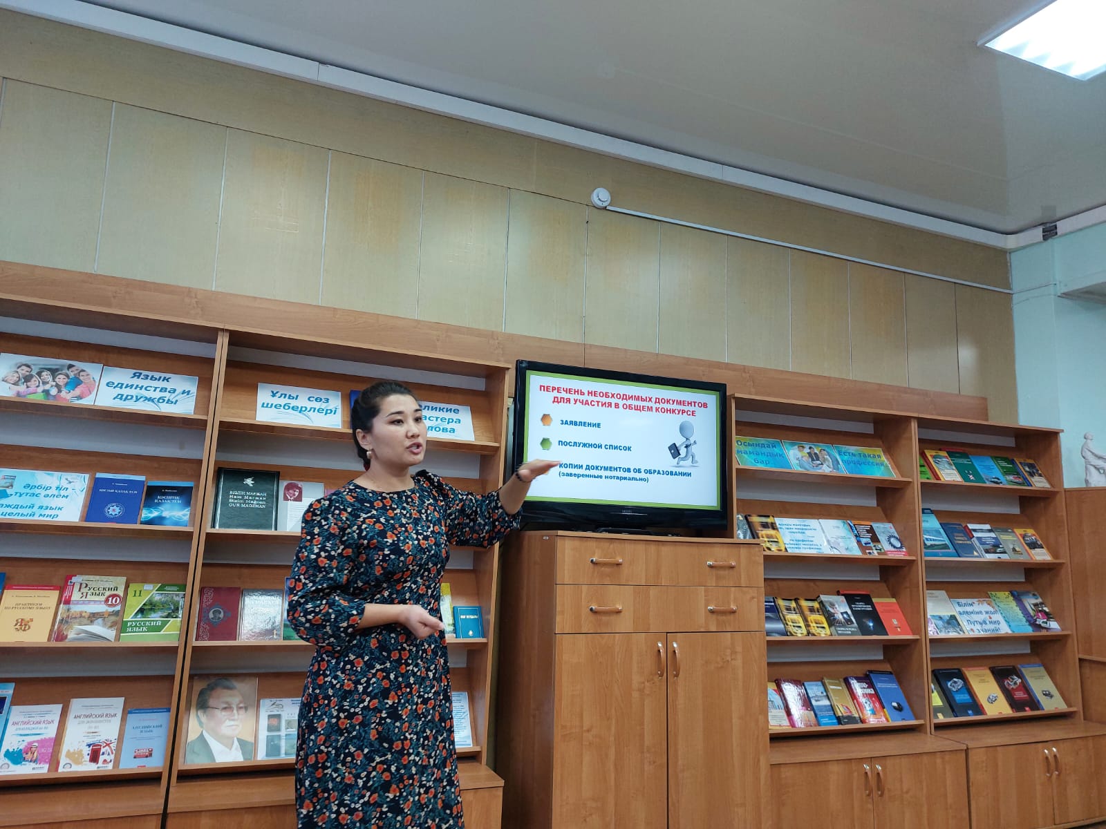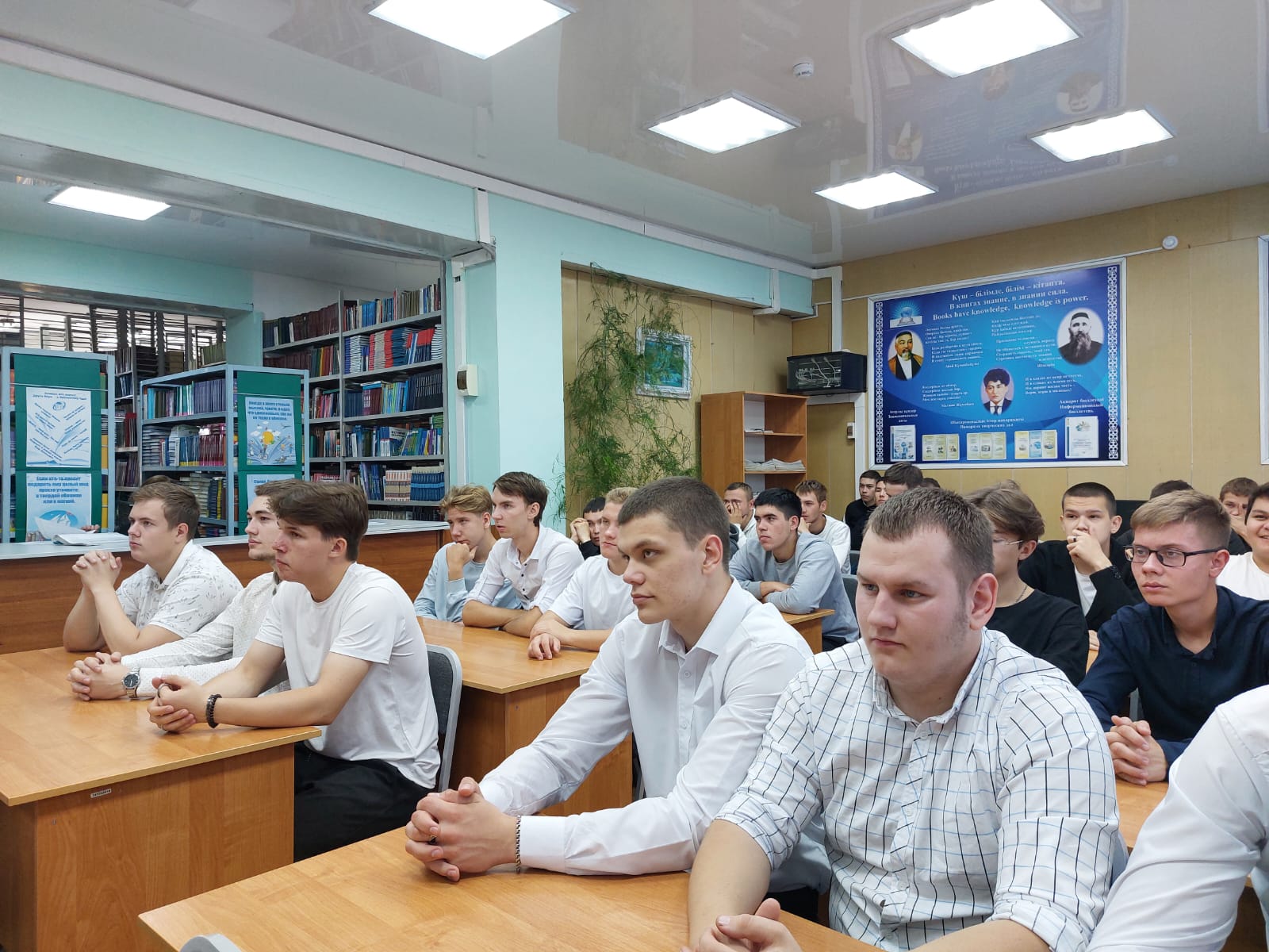 Іс-шара барысында слайдтар көрсетіліп, "Қазақстанның машина жасау саласы" бейнефильмі көрсетілді. Оқу залында "Осындай мамандық бар…" атты кітап көрмесі ұйымдастырылды.