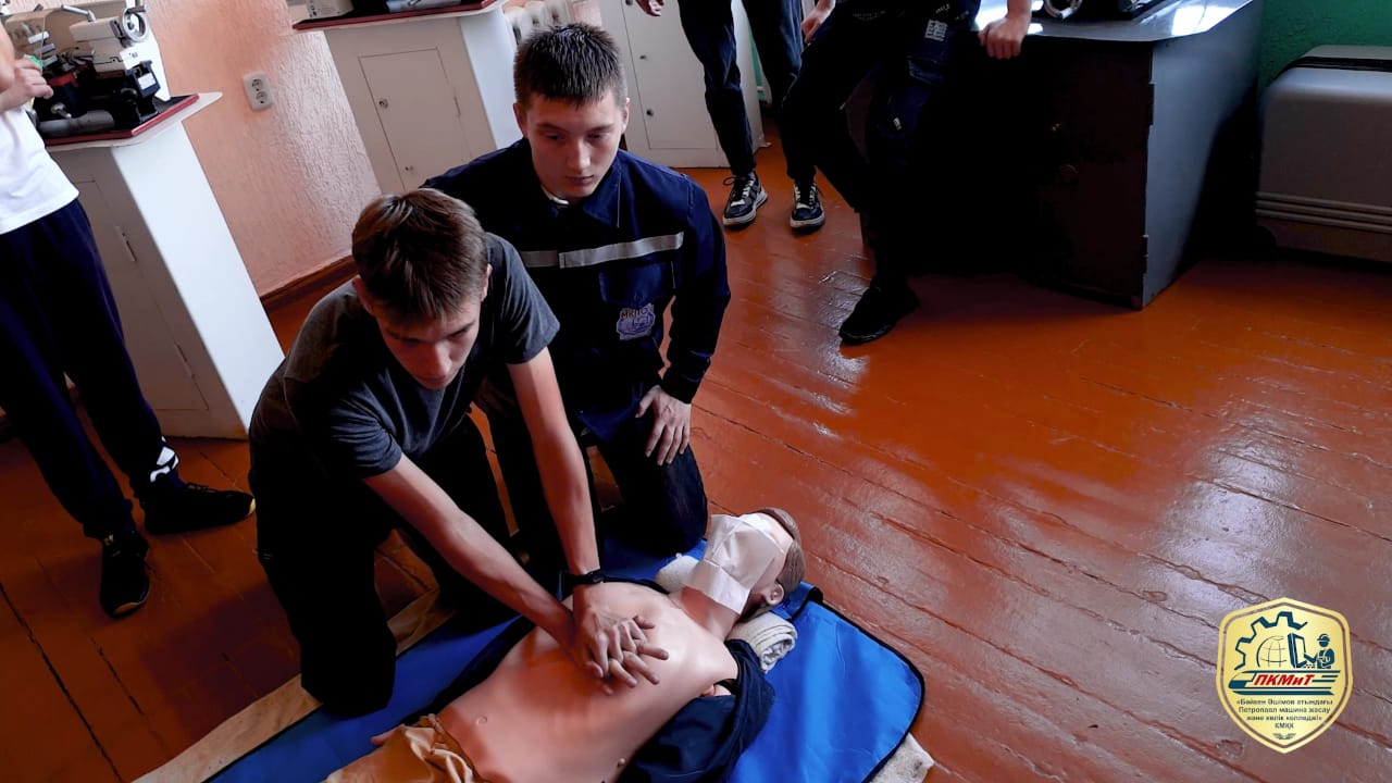 1) арнайы манекен-тренажер көмегімен зардап шегушіге алғашқы медициналық көмек көрсету.