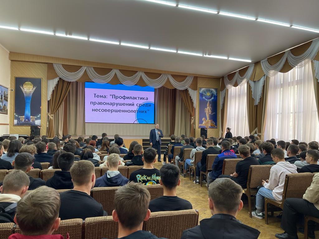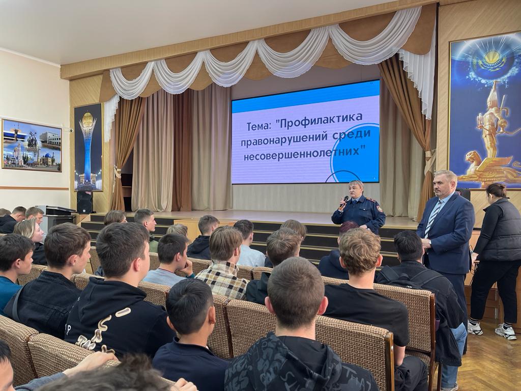 Ювеналды полицияның аға инспекторы студенттерді кәмелетке толмағандардың әкімшілік және қылмыстық жауапкершілігі туралы хабардар етті. Жиналғандар алдында колледж директоры Фурманюк Анатолий Павлович сөз сөйлеп, Қазақстан Республикасының заңнамасын сақтау қажеттігін еске салды. Педагог-психолог Дания Бейбутовна Турысова студенттермен интернет-алаяқтық схемасына түскен құрдастарының өміріндегі оқиғалармен бөлісті. Іс-шараны ұйымдастырушылар мұндай кездесулер бірқатар қылмыстардың алдын алады деп шын жүректен үміттенеді, өйткені олар заңға бағынатын азаматты тәрбиелеуге ықпал етеді.