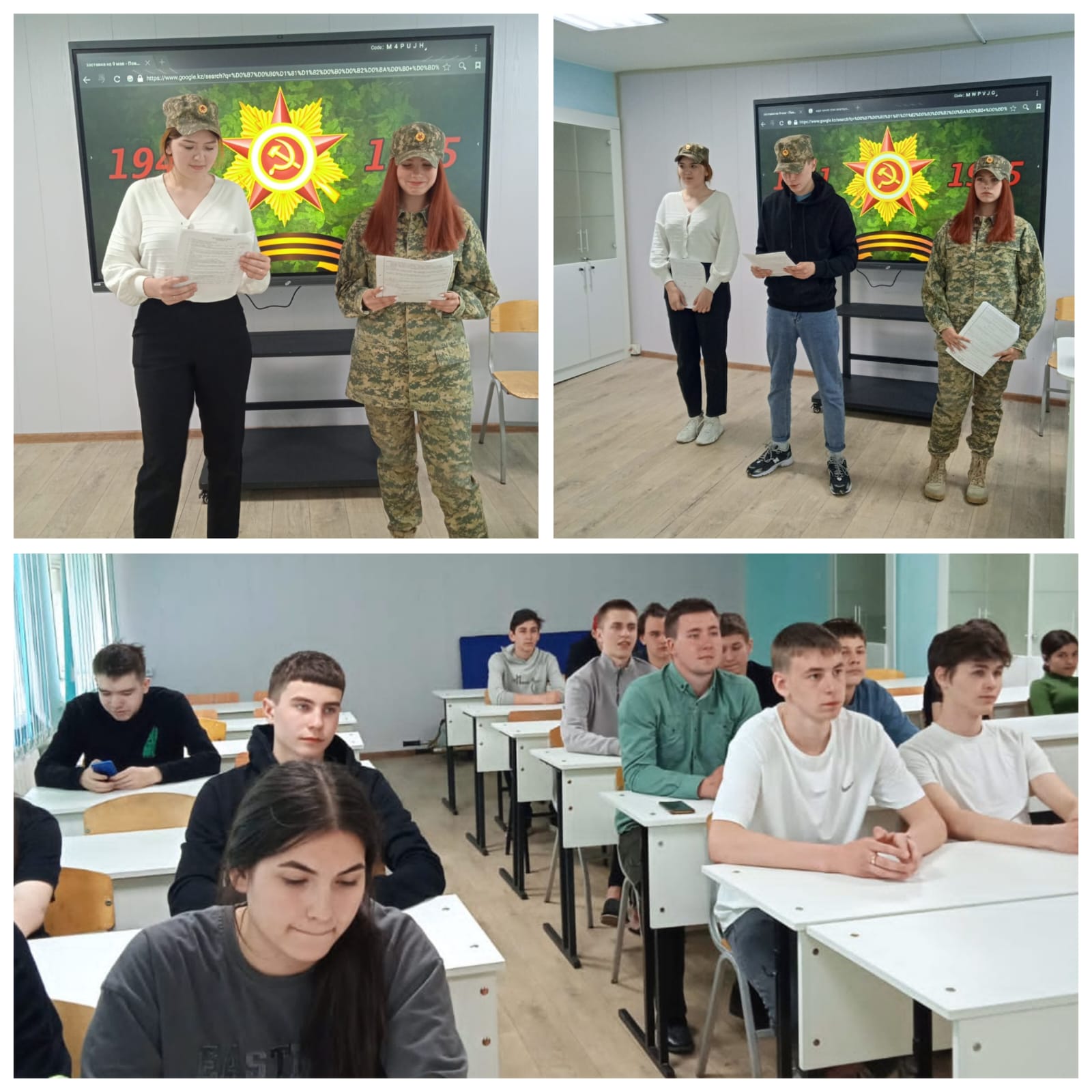 2023 жылдың 4 мамырында Байкен Әшімов атындағы Петропавл машина жасау және көлік колледжінің кітапханасында ҰОС Жеңіс күніне арналған "Өткен заман батырлары туралы" еске алу сабағы түрінде "Оқу колледжі" тұжырымдамасы аясында "Мұра" әдеби клубының отырысы өтті. Кеңестік сарбаздар мен тыл еңбеккерлерінің ерлігі бүкіл әлемдегі қазіргі және болашақ ұрпақ үшін үлкен және өлмес естелік болып қалады. Ондаған жылдар өтеді, ұрпақтар ауысады, бірақ Ұлы Жеңіс біздің халқымыздың мақтанышы, әскери даңқы мен айбынының символы ретінде елдің батырлық шежіресінде мәңгі қалады.