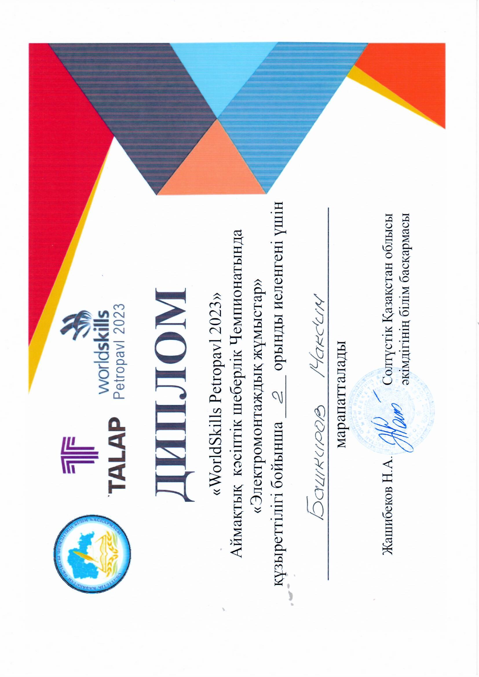 2023 жылғы 5-6 сәуірде Б. Әшімов атындағы Петропавл машина жасау және көлік колледжінің студенттері "Солтүстік Қазақстан кәсіптік-педагогикалық колледжі" базасында ұйымдастырылған "Электр монтаждау жұмыстары" бойынша "WorldSkills" кәсіптік шеберлік конкурсының өңірлік кезеңіне қатысты.