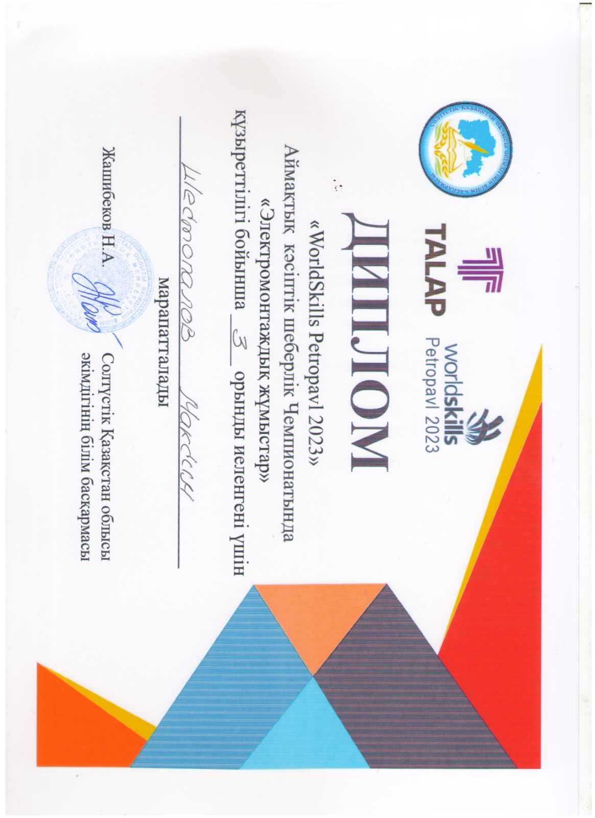 ЭМ-11 тобының студенті Шестопалов Максим-3 орын.