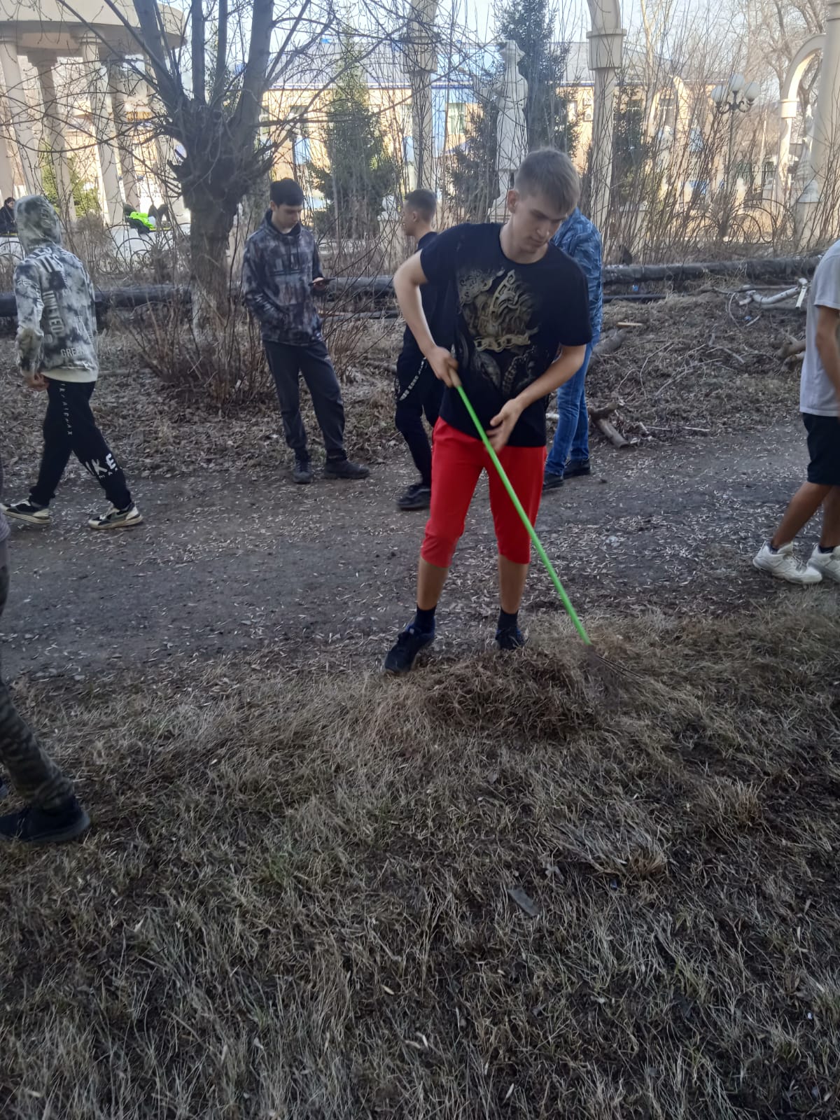 Student Parliament Club «Экология және еңбек» фракциясының белсенділері колледж аумағын қоқыс пен құрғақ жапырақтардан тазартты.