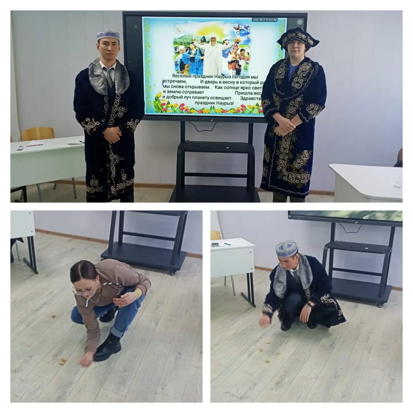 Іс-шараларға Д-11, Т-11 тобының бірінші курс студенттері қатысты. Студенттер мерекенің пайда болу тарихы туралы бейнероликті қызығушылықпен тамашалады, ұлттық киімдер көрсетілді, "Наурыз бата" тыңдады, ұлттық тағамдар туралы әңгімеп, наурыз көжені ұсынды, "Көрісу" дәстүрін, сондай-ақ "Бес Асық" және "Тоғыз құмалақ" ұлттық ойындарын көрсетті
