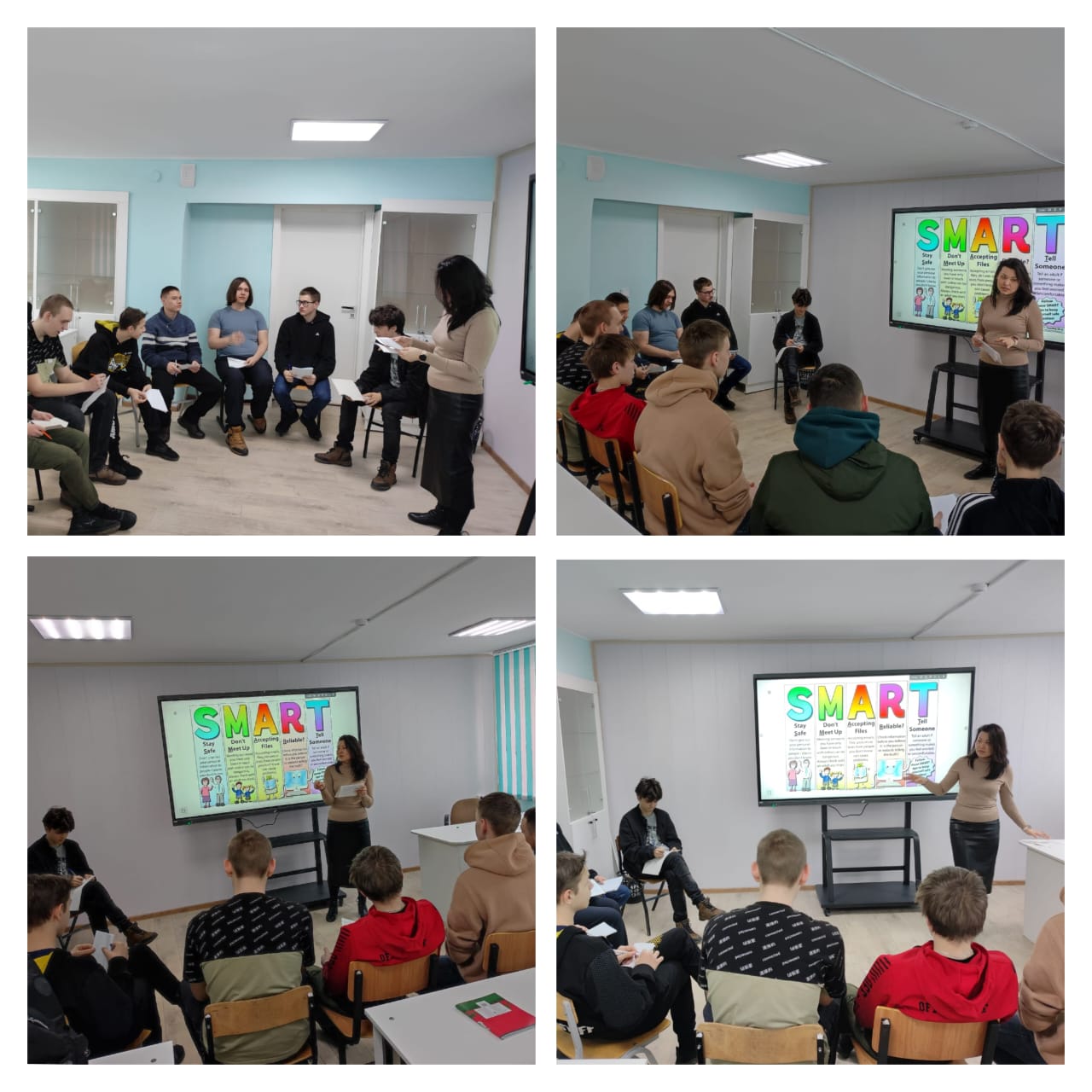 Психолог студенттермен қорқытуды қарапайым жанжалдан қалай ажыратуға болатынын, кім қорлаудың құрбаны болуы мүмкін екенін анықтады, сонымен қатар қорлаудың салдарын атап өтті. Дағдыларды пысықтау үшін эмпатияны дамытуға, ұжымды біріктіруге және сенімді дамытуға арналған жаттығулар өткізілді.