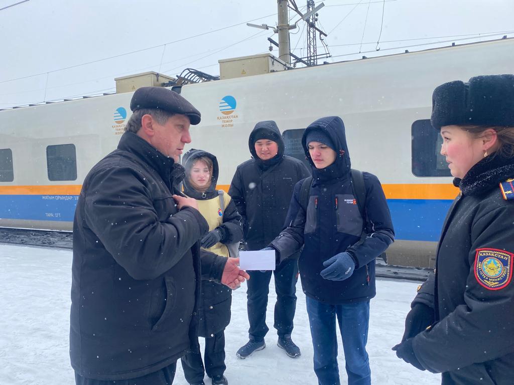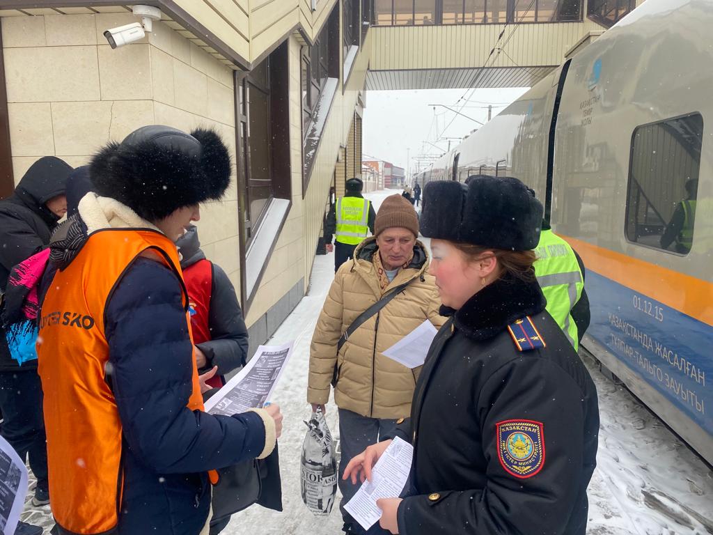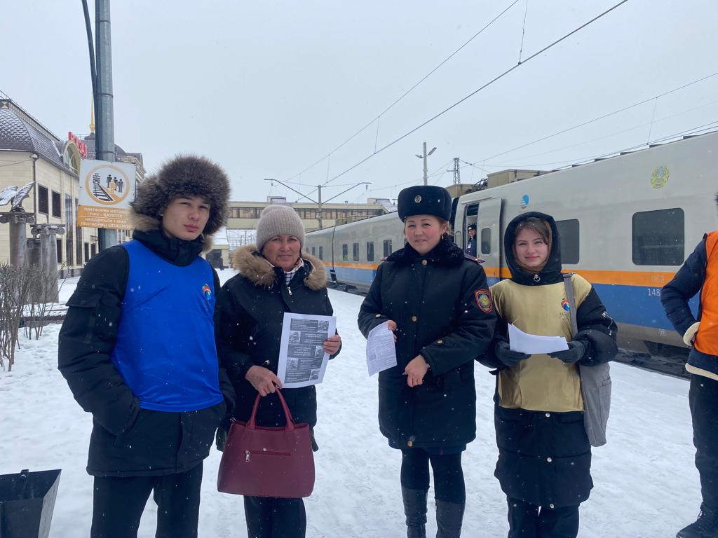 ӘҚБтК құқық бұзушылықтардың алдын алу жөніндегі топ инспекторы лейтенант Ж.С.Токтагуловамен бірге еріктілер қауіпсіз жүріс-тұрыс ережелері туралы ақпараттық парақшалар таратып, азаматтарды темір жол маңында сақтықты сақтау қажеттігі туралы хабардар етті.