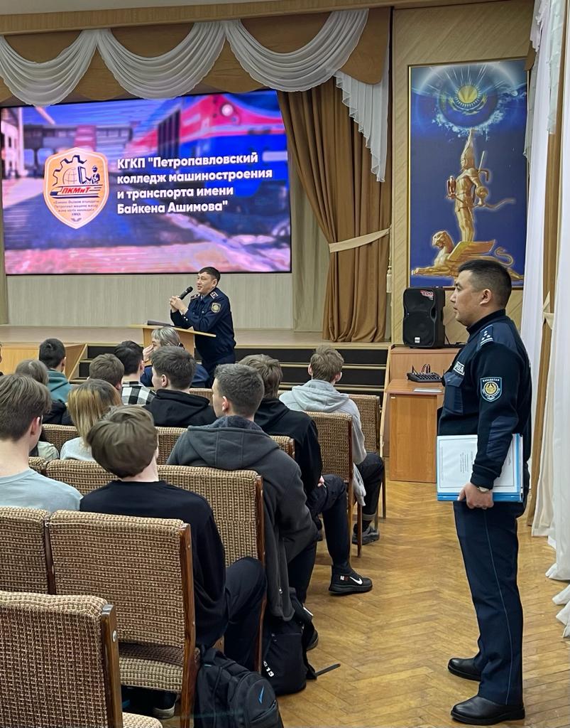 2023 жылғы 23 қаңтарда Байкен Әшімов атындағы Петропавл машина жасау және көлік колледжінде студенттердің СҚО ПД Петропавл қ. ПБ екінші полиция бөлімінің бастығы майор Т.А.Смагуловпен кездесуі өтті. Талғат Анасович студенттерді интернет-алаяқтарды қалай тануға болатындығы туралы хабардар етті. Әңгімелесуден кейін интернетте алдаудың ең танымал түрлері туралы бейнероликтер көрсетілді.