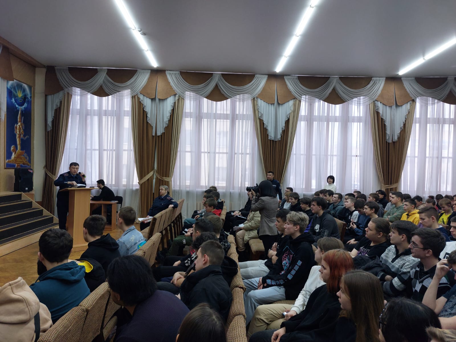 Кездесу соңында студенттер алдында Петропавл қ.ПБ екінші ОП ЖПҚ ПББ аға УПИ, полиция майоры Е. П. Леоненко сөз сөйледі. Елена Павловна жиналғандарға құқық бұзушылықтың не екенін, оның қылмыстан қалай ерекшеленетінін, әкімшілік және қылмыстық жауапкершілік қай жастан басталатынын, кәмелетке толмаған кезде қылмыс жасаған адамдар үшін қандай жаза түрлері мен мөлшері қарастырылғанын еске салды.