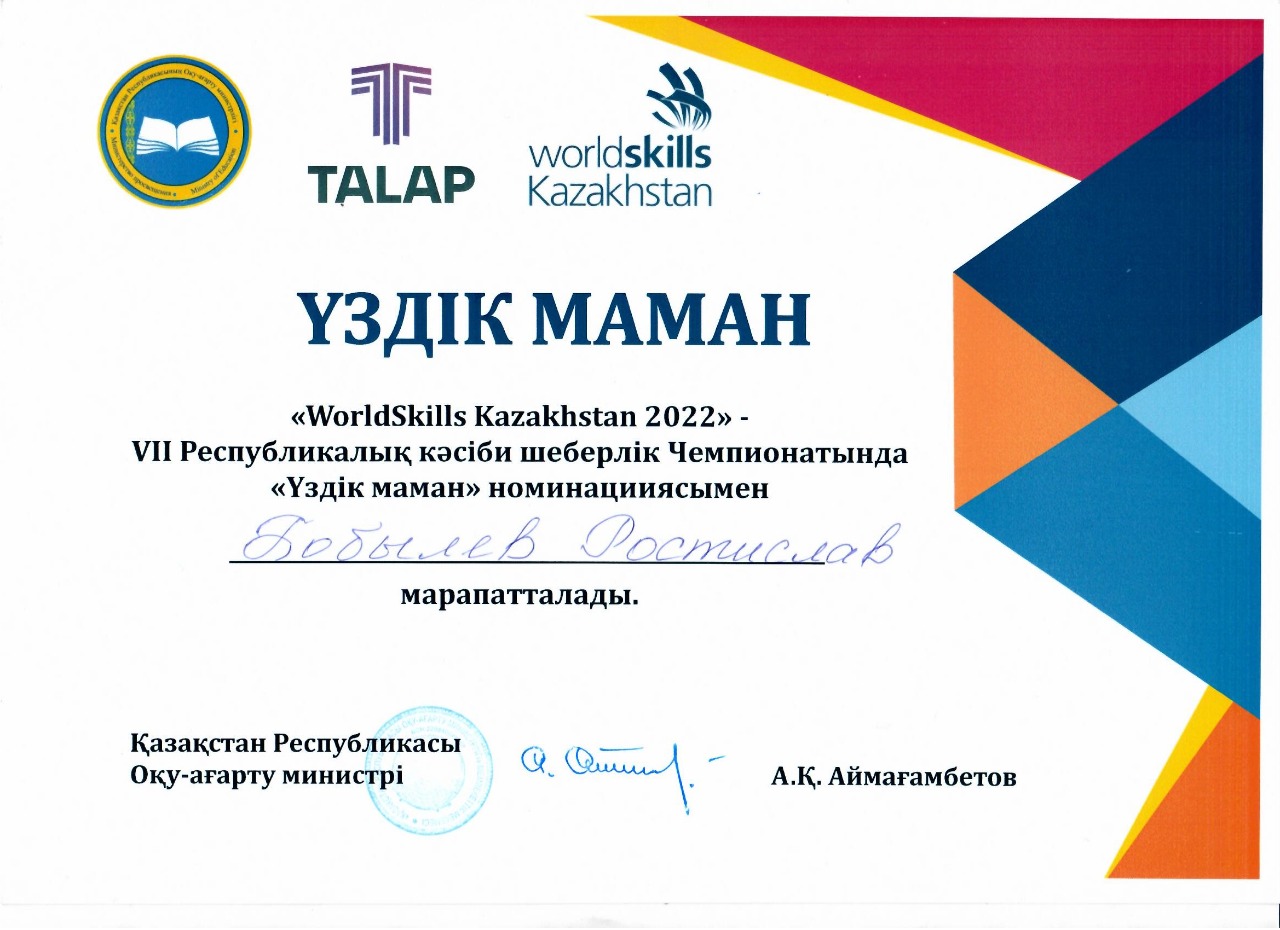 Солтүстік Қазақстан облысының атынан Бәйкен Әшімов атындағы Петропавл машина жасау және көлік колледжінің студенті Ростислав Витальевич Бобылев директордың ӨОЖ жөніндегі орынбасары және ө/о шебері Павел Владимирович Сенкин мен бригадир Михаил Михайлович Сущиктің жетекшілігімен қатысты. Байқау қорытындысы бойынша Бобылев Ростислав өз мамандығының үздік маманы ретінде медальонмен және сертификатпен марапатталды.