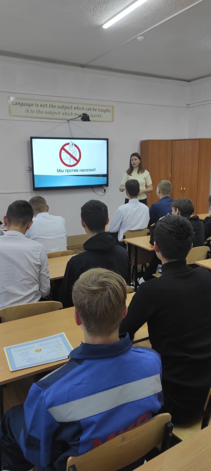 2022 жылдың 15 қарашасында Бәйкен Әшімов атындағы Петропавл машина жасау және көлік колледжінде «Біз зорлық-зомбылыққа қарсымыз» тақырыбында кураторлық сағат өтті.