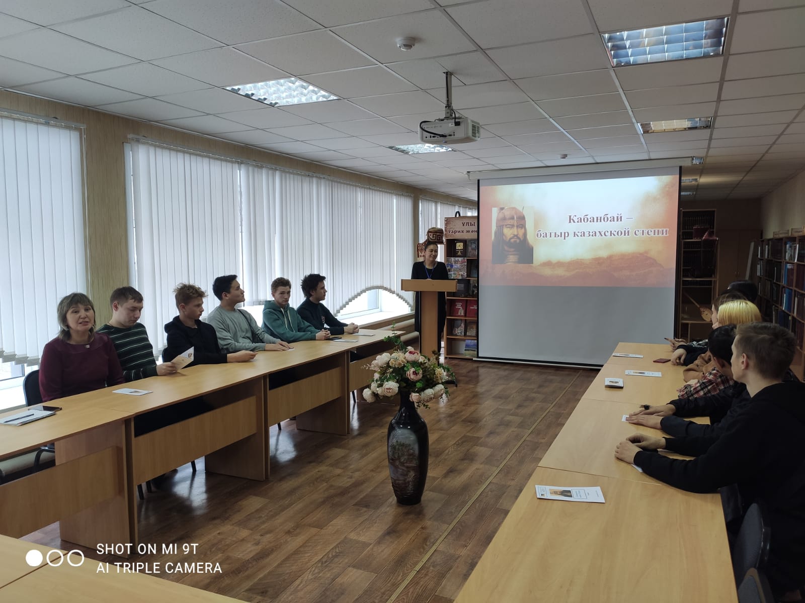 Студенттер Қазақ хандығының құрылуы, қазақ халқының жоңғар шапқыншылығына қарсы күресі туралы фильмді тамашалады, презентация арқылы батырдың өмірі мен оның қатысқан шайқастарымен танысты.