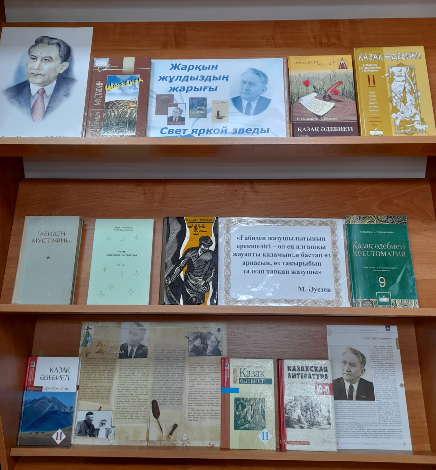 Студенттер Ғ. Мұстафиннің шығармаларынан үзінділер оқып, "Оның өмірі – халыққа қызмет ету"викторинасына белсенді қатысты. Кітапхананың оқу залында "Жарық жұлдыздың жарығы"атты кітап көрмесі ұйымдастырылды.