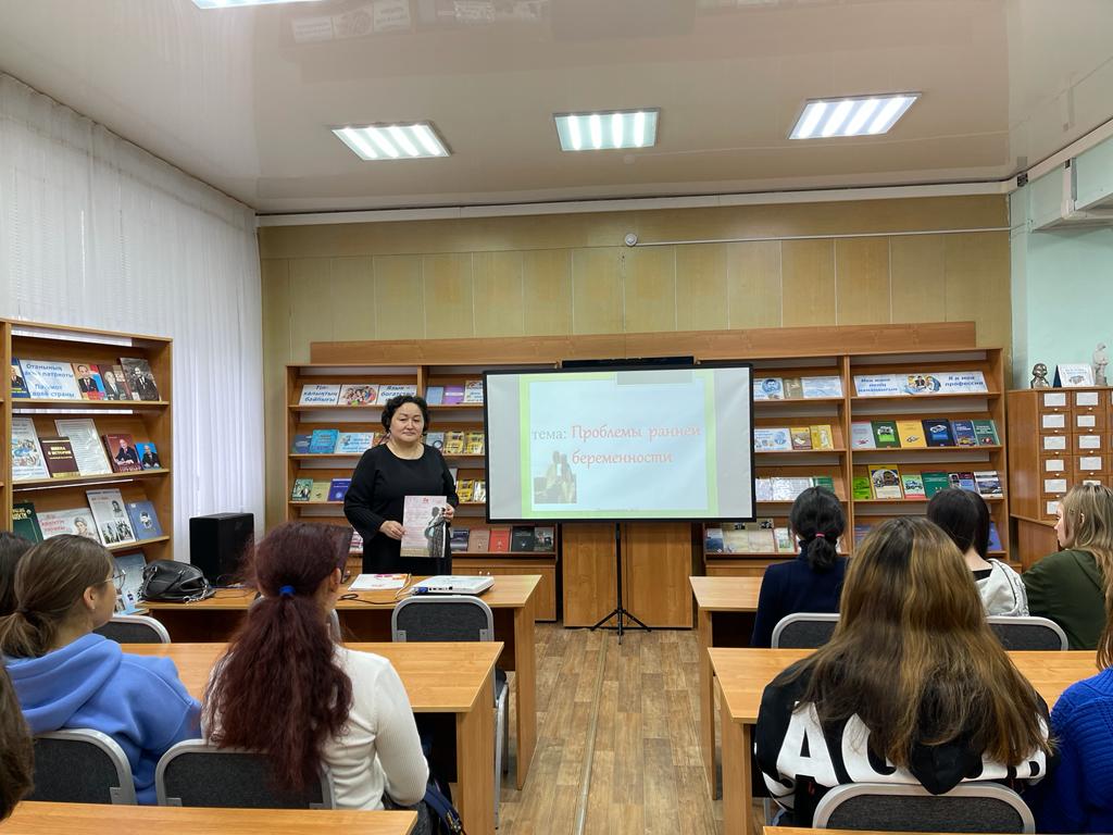 Мақсаты: студенттерді ерте жыныстық қатынастың салдарымен таныстыру; жыныстық азғындыққа, дөрекілікке, қол жетімділікке, пәктікке, сабырлылыққа, адамгершілік тазалыққа оң көзқарасты қалыптастыру; ерте жүктіліктің алдын алу. Меруерт Қурманбаева ерте жүктіліктің қаншалықты қауіпті екенін және одан қалай қорғану керектігін айтып , студенттермен ерте жүктіліктің мәселелері мен қорытындыларын талқылады. Сонымен қатар, "Аналар үйі" жобасы туралы толық ақпарат берілді.