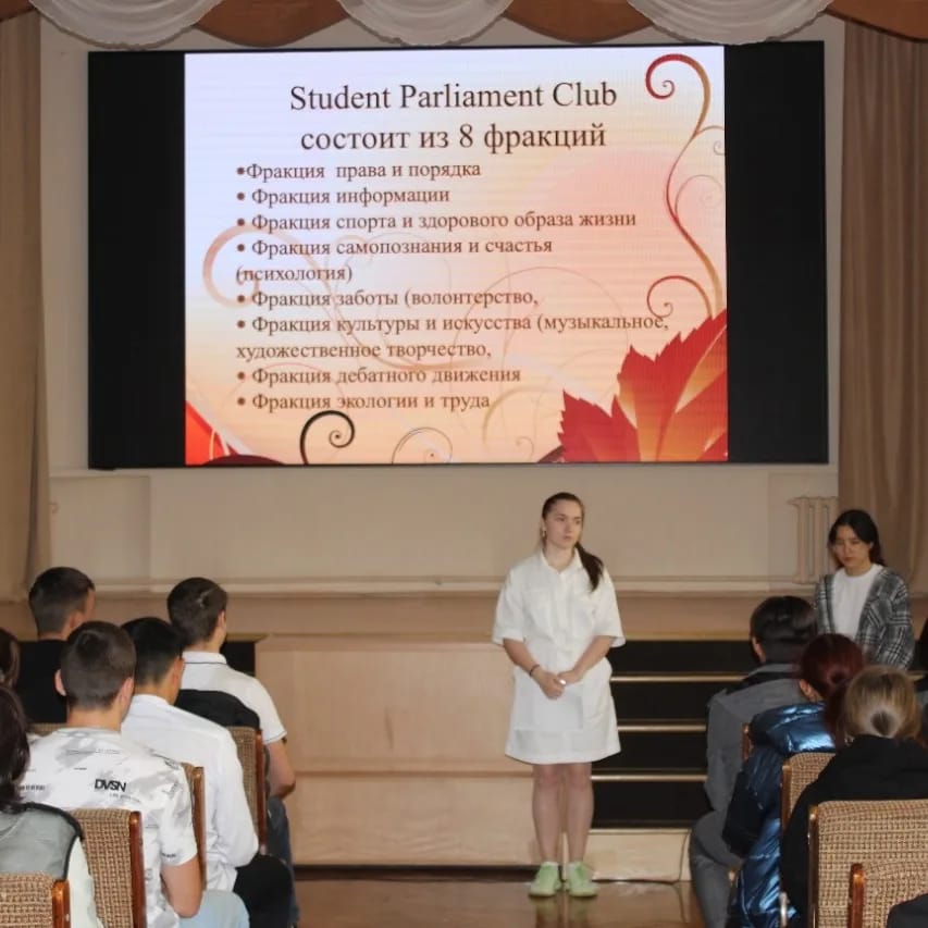 Студенттік парламент жастардың маңызды мәселелерін шешуге, оның әлеуметтік белсенділігін дамытуға және Жастар бастамаларын қолдауға бағытталған бастамашыл, дербес, өзін-өзі басқару нысаны болып табылады, онда әрбір студент өз әлеуетін іске асыра алады. Кездесудің мақсаты-бірінші курс студенттерін Студенттік өзін-өзі басқару жұмысымен таныстыру және колледждің мәдени-қоғамдық өміріне белсенді қатысуға қызығушылығын ояту.