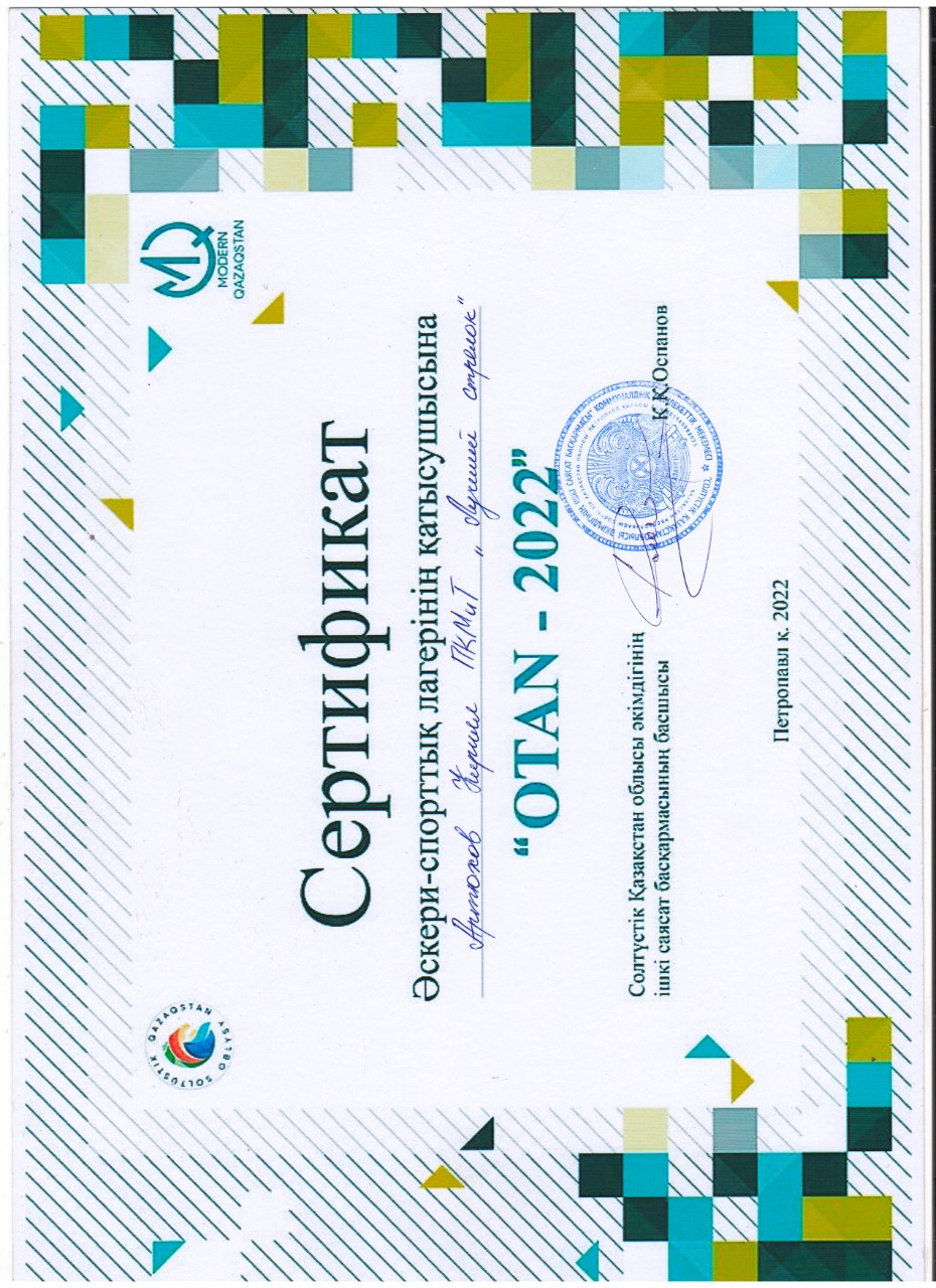 2022 жылдың 21 қыркүйегінде Б.Әшімов атындағы Петропавл машина жасау және көлік колледжінің студенттері «Modern Qazaqstan» қоғамдық қозғалысы ұйымдастырған «Отан 2022» әскери-патриоттық лагеріне «Солтүстік Қазақстан облысы әкімдігінің көмегімен «Жастарды патриоттыққа тәрбиелеу жөніндегі іс-шаралар кешені» жобасы аясында қатысты. Бұл іс-шараның мақсаты – азаматтың жеке басының әскери-патриоттық, физикалық, интеллектуалдық және рухани дамуына, оның көшбасшылық қасиеттеріне ықпал ету.