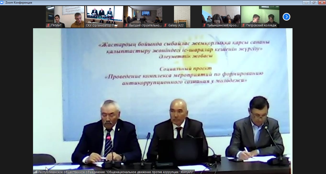 Іс-шараны ұйымдастырушылар "Жастар арасында сыбайлас жемқорлыққа қарсы сананы қалыптастыру бойынша іс-шаралар кешенін өткізу"әлеуметтік жобасы туралы айтып берді. Жобаның мақсаты: жастар арасында теріс қатынасты, сыбайлас жемқорлықтың кез келген түріне қарсы іс-қимыл мәселесі бойынша белсенді азаматтық ұстанымды, Бостандық, отбасы құндылықтары, жеке кеңістік және өзін-өзі дамыту мүмкіндіктері туралы орнықты дүниетанымдық ұстанымды қалыптастыру.