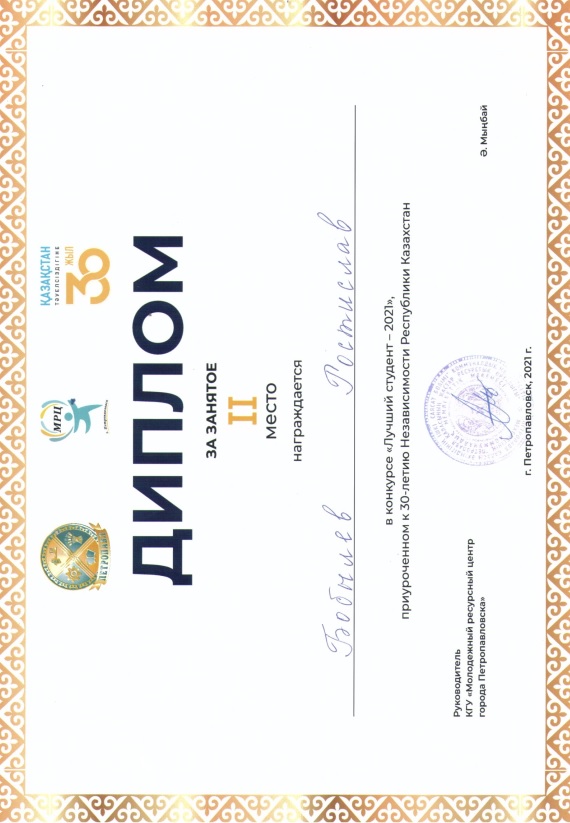 2021 жылғы 11-21 желтоқсан аралығында Петропавл қаласының ЖКО-да Қазақстан Республикасы Тәуелсіздігінің 30 жылдығына арналған "Үздік студент - 2021" байқауын ұйымдастырды және өткізді. Іс-шараның мақсаты білім беру, спорттық, шығармашылық, қоғамдық, волонтерлік қызметте жоғары нәтижелерге қол жеткізген колледждер мен университеттің талантты және дарынды студенттерін анықтау және көтермелеу болды.