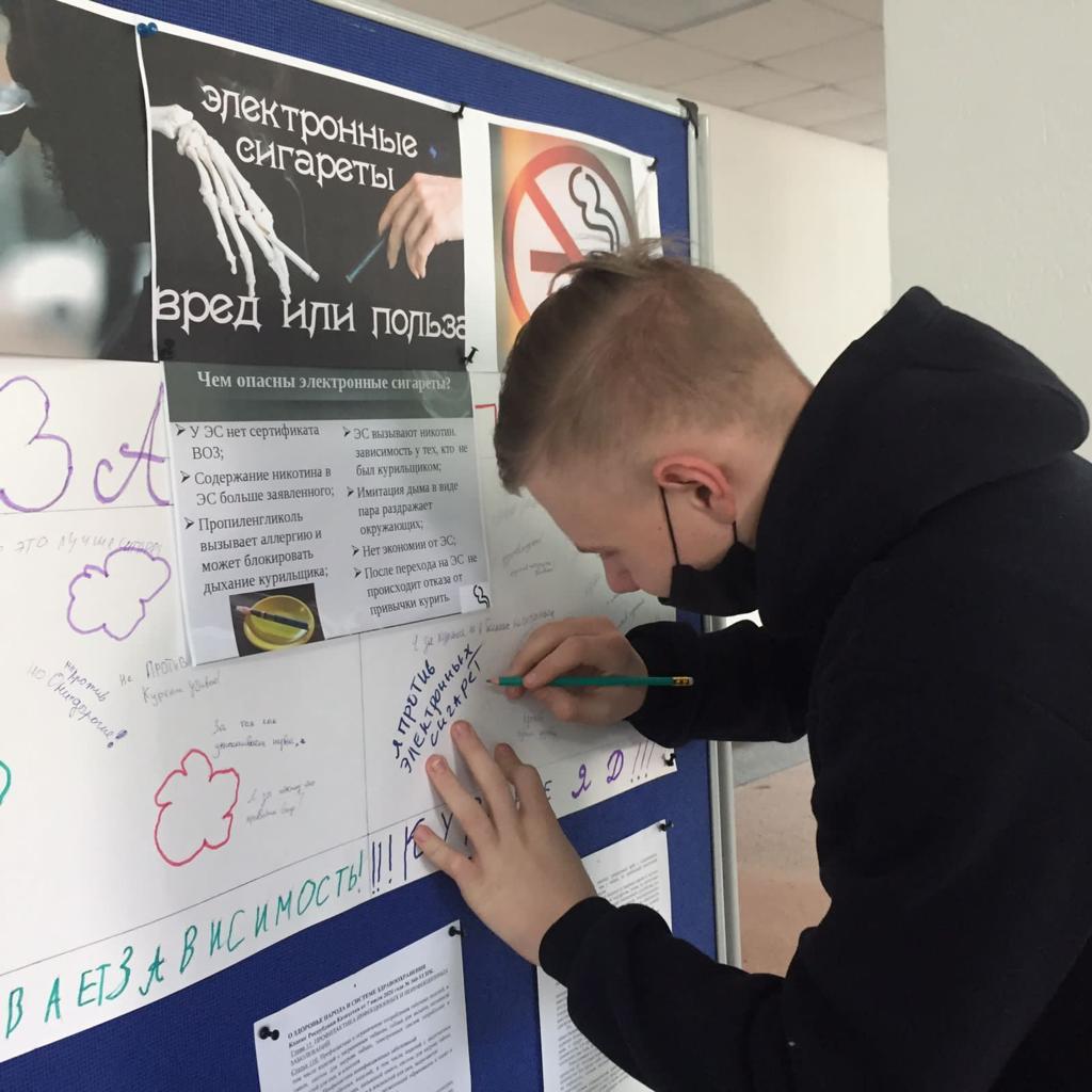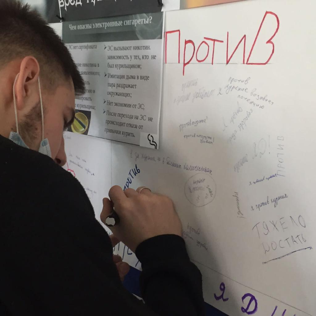 2021 жылғы 4-8 желтоқсан аралығында Бәйкен Әшімов атындағы Петропавл машина жасау және көлік колледжінде " Вейп-денсаулық үшін өте қауіпті!». Негізгі мақсаты: студенттердің вапа туралы білім деңгейін анықтау, жасөспірімдер арасында темекі шегудің алдын алу.
