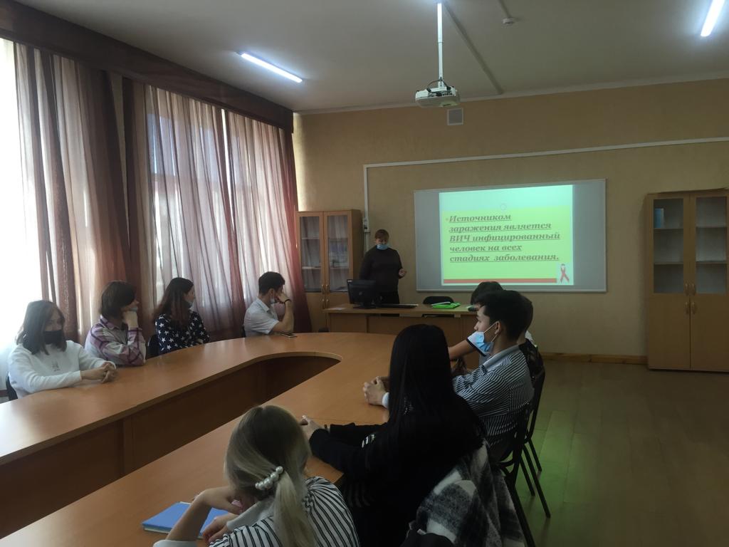 2021 жылдың 20 қазанында облыстық ЖИТС – тың алдын алу және оған қарсы күрес орталығының әлеуметтанушысы О.С. Симухина 1 курс студенттеріне "АИТВ-инфекциясы, ЖИТС"тақырыбында конференция өткізді.