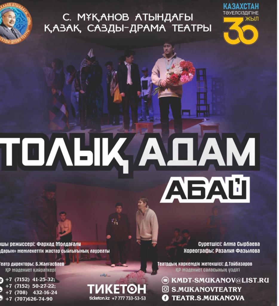 Абай өз шығармаларында надандық, жалқаулық, Сараңдық сияқты адамдардың жаман қылықтары туралы айтады. "ТОЛЫҚ АДАМ" спектаклінде фарс, гротеск және карикатура үйлесім тапқан.