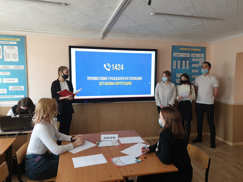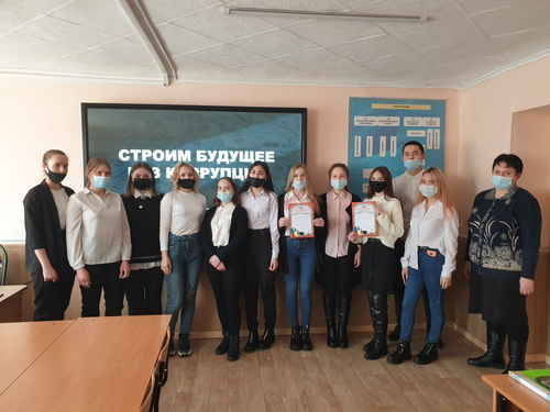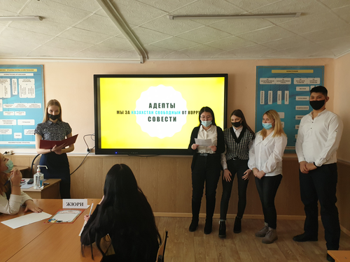 «Sanaly urpaq» студенттік қозғалысты дамытудың сыбайлас жемқорлыққа қарсы бағдарламасын іске асыру шеңберінде 2021 жылғы 22 ақпанда Б-31 тобында оқытушы И. А. Сергеева «Болашақты сыбайлас жемқорлықсыз құрайық!» іскерлік ойынын өткізді.