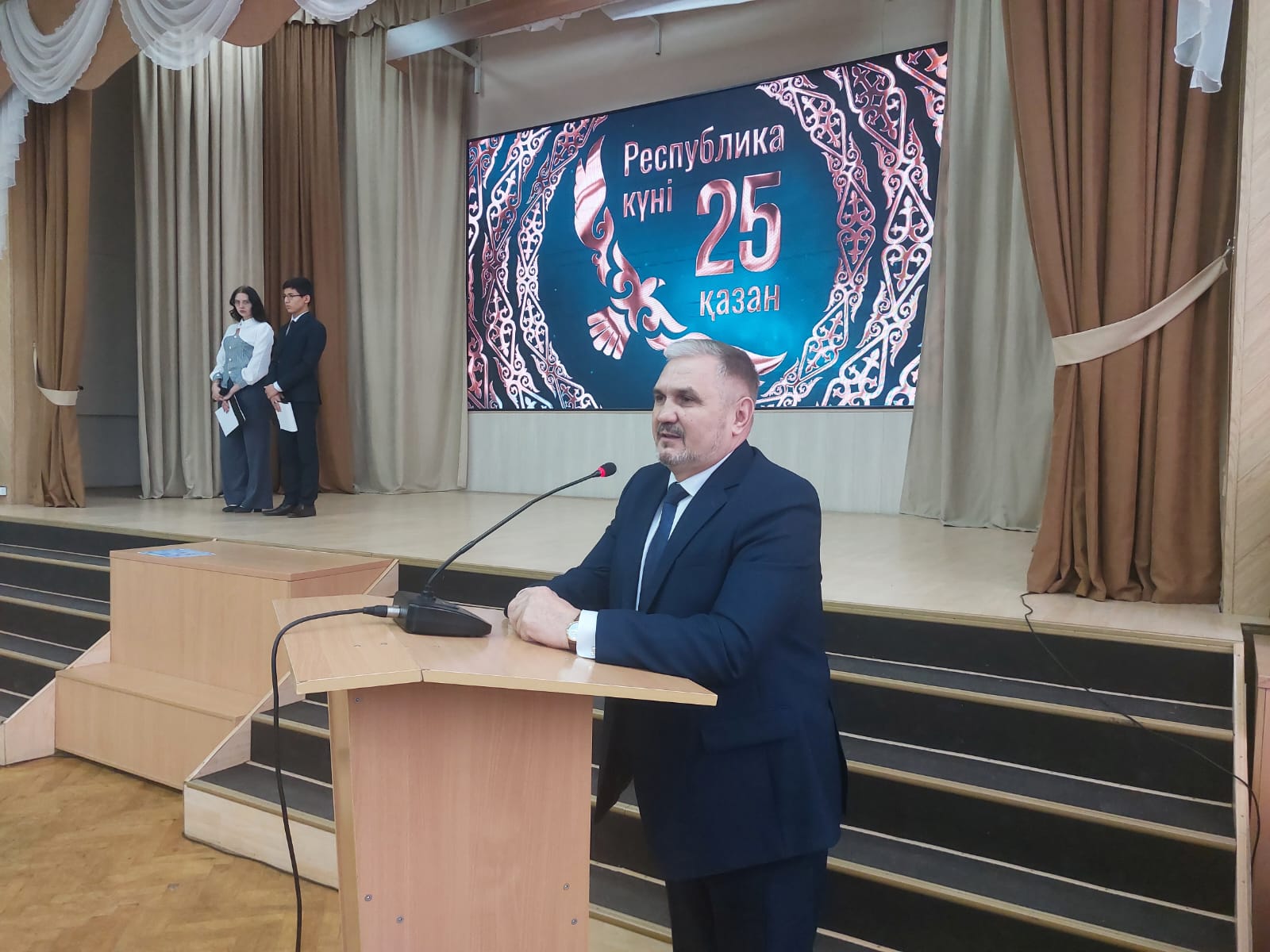 2025 жылғы 24 қазанда Б.Әшімов атындағы Петропавл машина жасау және көлік колледжінде Қазақстан Республикасының күніне арналған салтанатты іс-шара өтті. Бұл күн – халықтың бірлігін, тәуелсіздігін және Қазақстанның өркендеуге, дамуға деген ұмтылысын білдіретін мереке. Мерекелік іс-шара Қазақстан Республикасының Мемлекеттік Әнұранымен басталды. Акт залында колледждің студенттері мен оқытушылары жиналды. Іс-шараға қатысушыларға колледж директоры А.П.Фурманюк құттықтау сөз арнады. Республика күніне орай ол педагогикалық ұжымды адал еңбегі мен жауапкершілікпен атқарған жұмысы үшін Құрмет грамоталарымен марапаттады. Көрермендердің ерекше назарын алғашқы әскери және технологиялық дайындық пәнінің оқытушысы, полковник С.У.Тогузбаевтың сөзі аударды. Ол мерекенің тарихы туралы айтып, Тәуелсіз Қазақстанның қалыптасу жолына және бұл күннің қазіргі ұрпақ үшін маңыздылығына тоқталды. Мерекелік көңіл күйді студенттердің шығармашылық нөмірлері айшықтады. Көрермендер ұлттық нақышқа толы, жүрекке жылы әсер қалдырған әсем күй орындаған домбырашының өнерін тамсана тыңдады. Сондай-ақ Отан туралы шырқалған әндер мен қазақ халқының дәстүрі мен мәдени байлығын бейнелеген би көріністері ерекше әсер қалдырды. Салтанатты іс-шара жылы да көтеріңкі көңіл күйде өтті. Бұл күн Қазақстанның күші – халықтың бірлігінде, Отанға деген сүйіспеншілігінде және бейбітшілік пен өркендеуге ұмтылысында екенін тағы бір мәрте еске салды.