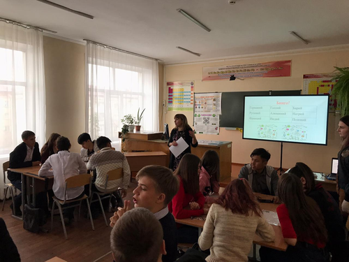 Бизнес-тренер Е. Коняхина студенттерге өз бизнесін қалай ашу керектігін, бизнесті жүргізудің заңды негіздері туралы ақпарат берді,маркетинг негіздерін, адам ресурстарын басқару, қаржылық құрамдауыштарды, персоналды басқару негіздерін үйретті.