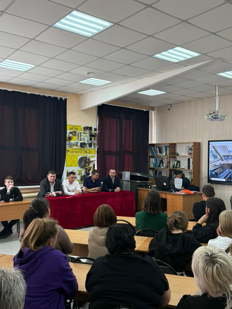 Кездесуге теміржол саласының өкілдері қатысты:Чижаковский Андрей Сергеевич – Оңтүстік-Орал теміржолының Петропавл бөлімшесінің жетекші инженері;Сафонов Александр Иванович – оқыту бойынша нұсқаушы-машинист;Чорий Виталий Анатольевич – локомотивтерді қарау және жөндеу слесары;Иванов Константин Евгеньевич – тепловоз машинисінің көмекшісі.Студенттер өздерін қызықтырған сұрақтарға толыққанды жауаптар алды.