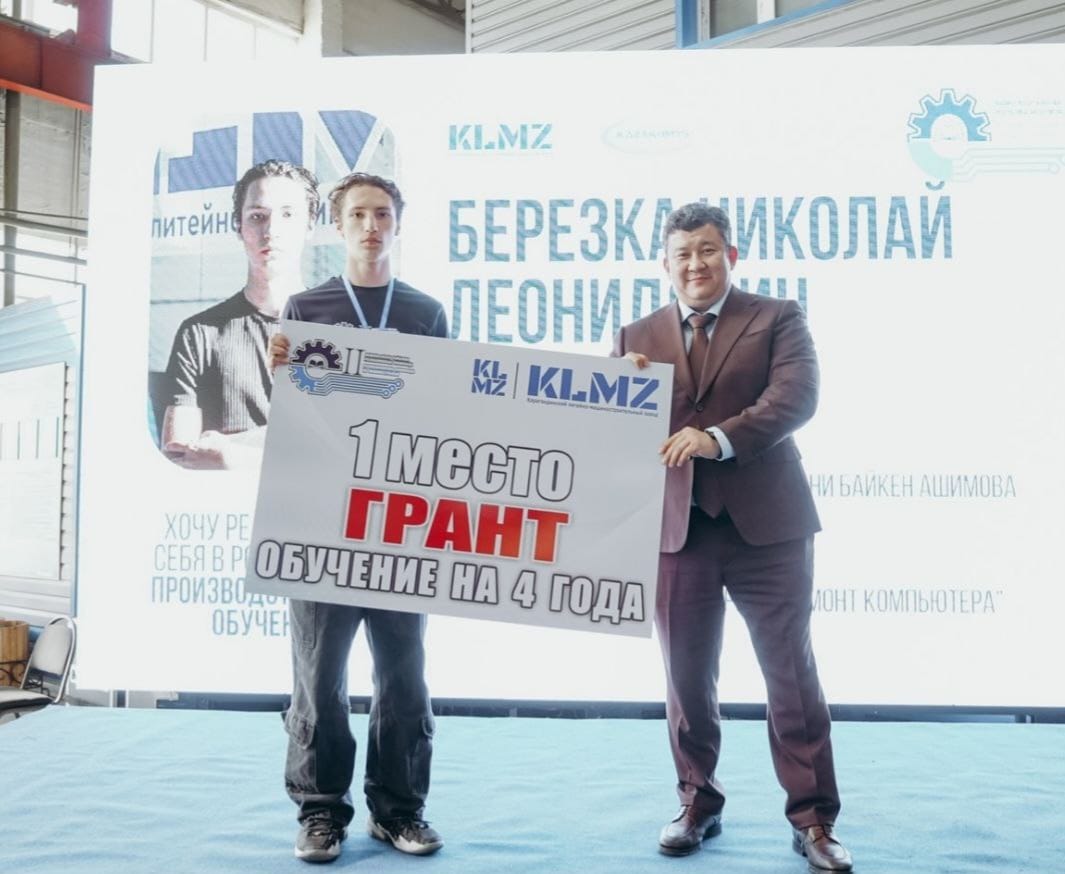 Қарағанды құйма-машина жасау зауыты мен Әбілқас Сағынов атындағы Қарағанды техникалық университеті бірлесіп ұйымдастырған машина жасау бойынша Республикалық олимпиаданың жеңімпазы – «Машина жасау технологиясы» мамандығы бойынша білім алушыларды 4 курс студенті Николай Березканы шын жүректен құттықтаймыз!