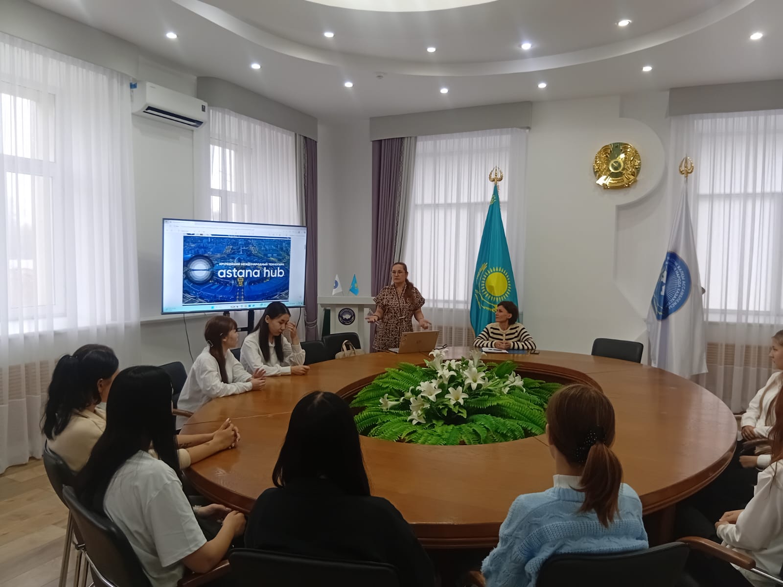 2025 жылғы 9 қыркүйекте 1 курс студенттері арасында Қазақстан Республикасы Президенті Қ. Тоқаевтың 2025 жылғы 8 қыркүйектегі «Жасанды интеллект дәуіріндегі Қазақстан: өзекті міндеттер және оларды цифрлық трансформация арқылы шешу» атты Жолдауының негізгі ережелерін түсіндіру бойынша әңгіме өткізілді.