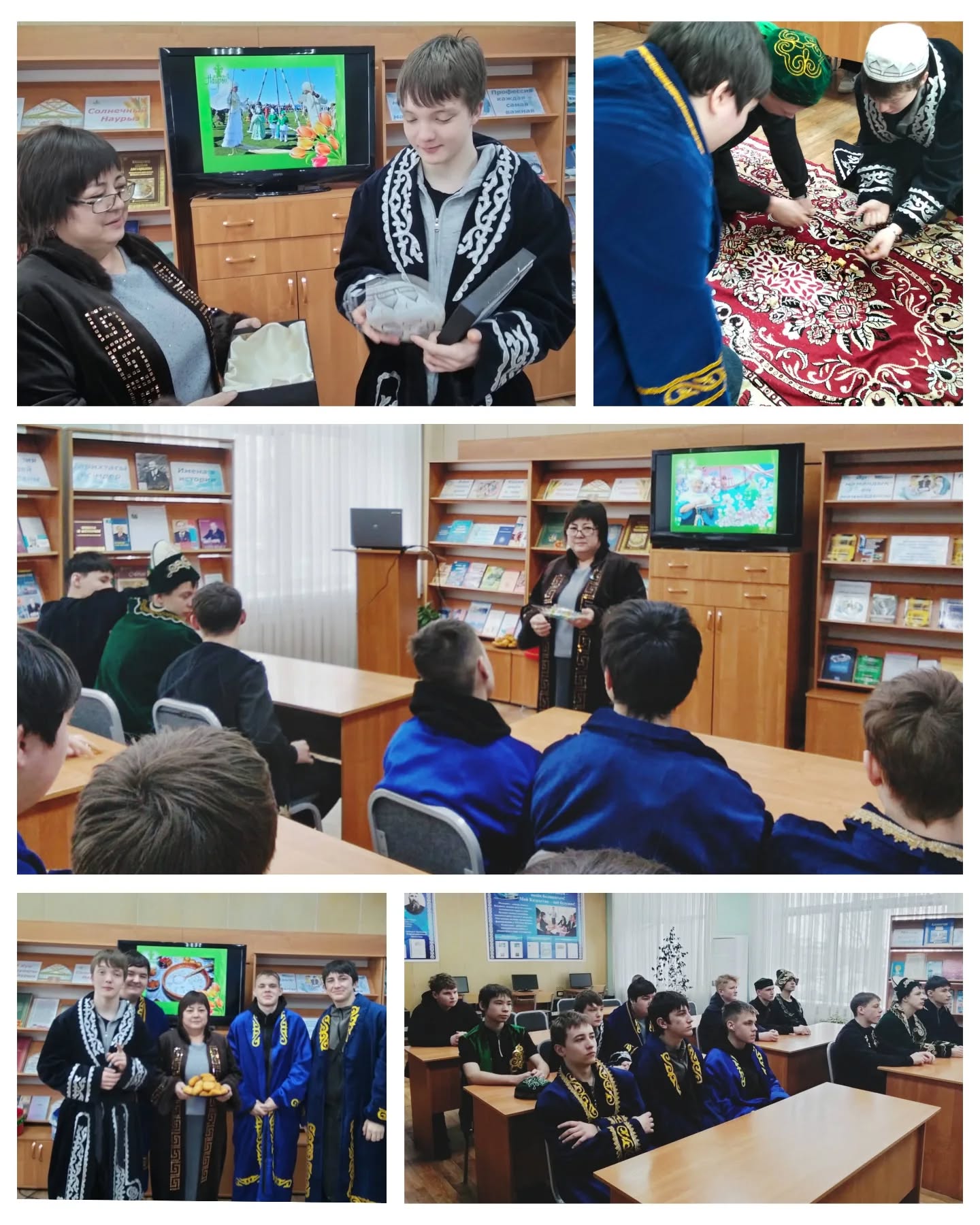 Іс-шара барысында «Наурыз – жаңару мерекесі» атты слайдтық презентация мен бейнефильм, сондай-ақ «Наурыз» әнінің клипі көрсетілді. «Көктем» викторинасы мен «Асық» ойынында студенттер көптеген жағымды эмоциялар мен жарқын әсерлер алды, өз таланттарын көрсетіп, шығармашылық қабілеттерін танытты. Оқу залында «Күн шуақты Наурыз» атты кітап көрмесі ұйымдастырылды.