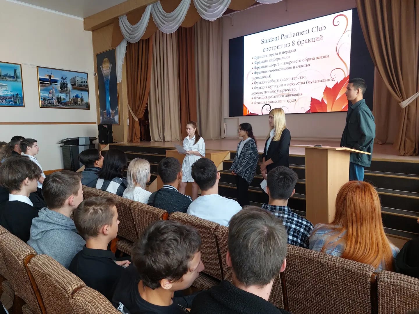 Студенттік парламент жастардың маңызды мәселелерін шешуге, оның әлеуметтік белсенділігін дамытуға және Жастар бастамаларын қолдауға бағытталған бастамашыл, дербес, өзін-өзі басқару нысаны болып табылады, онда әрбір студент өз әлеуетін іске асыра алады. Кездесудің мақсаты-бірінші курс студенттерін Студенттік өзін-өзі басқару жұмысымен таныстыру және колледждің мәдени-қоғамдық өміріне белсенді қатысуға қызығушылығын ояту.