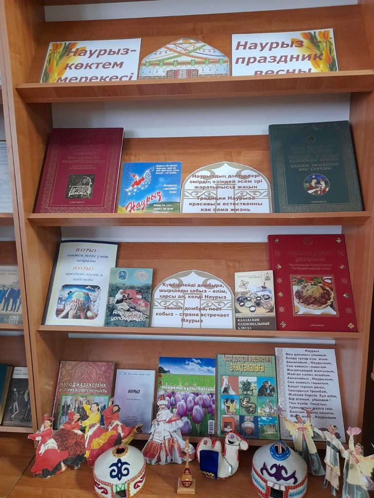 Кітапхананың кіре берісінде мерекелік көңіл-күй сезіліп, әуен ойналып жатты. 1-қабатта «Көктем мен достықты Наурыз сыйлайды» атты кітап көрмесі дайындалып, сол жерде «Наурыз-кітаппен кездесу» акциясы өткізіліп жатты, мұнда әрбір студентке оқу үшін тегін кітап алуға мүмкіндік болды.