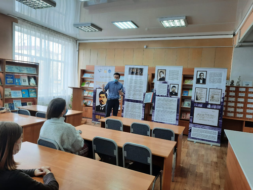 Іс – шараға қатысушыларға қазақ әдебиетінің өкілі-дарынды жазушы Сәбит Мұқанов туралы айтылды. Оның шығармаларының кейіпкерлері қазақ халқының ең жақсы қасиеттерін бейнелейді: патриотизм, еркіндік, жарқын болашаққа деген сенім және халықтар арасындағы достық. Шығармашылық қызметінің жарты ғасырында ол қазақ әдебиетінің дамуына үлкен үлес қосты.