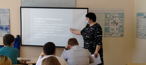 2021 жылдың 30 наурызында Байкен Әшімов атындағы Петропавл теміржол көлігі колледжінде әлеуметтік-экономикалық пәндер оқытушысы И.А. Сергеева «Қазақстан Республикасының заңнамасын зерделейміз» тақырыбында интерактивті дәріс өткізді. Бірінші курс студенттері «Қазақстан Республикасының азаматтығы туралы» ҚР Конституциялық заңының негізгі ережелері туралы білді, түрлі құқықтық жағдайларды қарастырды және шешті, викторина сұрақтарына жауап берді.