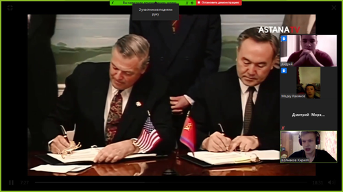 Іс-шараны өткізу барысында слайдтық презентация және «Қазақстан Республикасының Тұңғыш Президенті күні» бейнефильмі, Н. Назарбаевтың «Город мой» өлеңіне жазылған әні мен Қазақстан туралы «Сильные люди, сильной земли» әнінің бейнеклиптері көрсетілді.