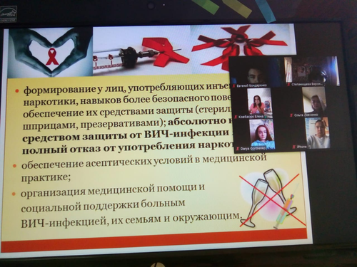 2020 жылдың 7 қазанында облыстық ЖИТС - тың алдын алу және оған қарсы күрес орталығының әлеуметтанушысы О. С. Симухина Байкен Әшімов атындағы Петропавл теміржол көлігі колледжінің I курс студенттеріне «АИТВ – инфекциясы және оның алдын алу» тақырыбында онлайн-конференция өткізді.