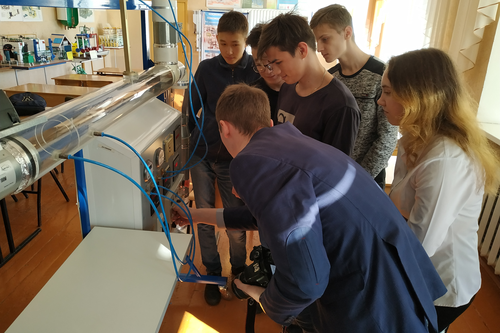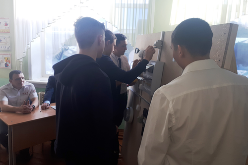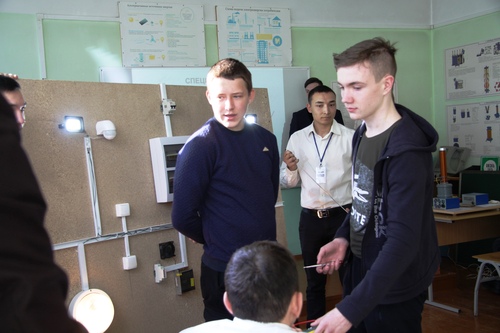 «Жылу техникалық жабдықтар және жылумен қамтамасыз ету жүйелері» аудиториясының оқу стендтерінде зертханалық–тәжірибелік сабақтар барысында оқушыларды кәсіби ортаға салу жүргізілді. «Жалпы гидравлика» стендінде балалар қалқымалы датчиктердің көрсеткіштері бойынша электронды секундомердің көмегімен өлшеуіш ыдыстағы су шығынын анықтауды үйренді, «Жылугазбен жабдықтау және желдету жүйелерінің автоматикасы» стендінде өлшеу құралдарының жұмыс істеу принципін игерді, Пито түтігінің көмегімен ауа шығынын анықтады.