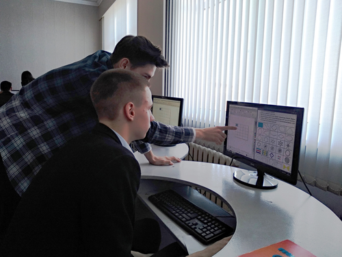 «Графикалық дизайн» құзыреттілігі бойынша оқушылар геометриялық фигуралардан сурет салды. Қатысушылар графикалық редактордың жақсы деңгейін көрсетті және ұсынылған тапсырмаларды үлкен қызығушылықпен орындады. Сонымен қатар, студенттерге «Есептеу техникасы және бағдарламалық қамтамасыз ету» мамандығының студенттерімен нақты дипломдық жобалау аясында жазылған бағдарламалар көрсетілді.