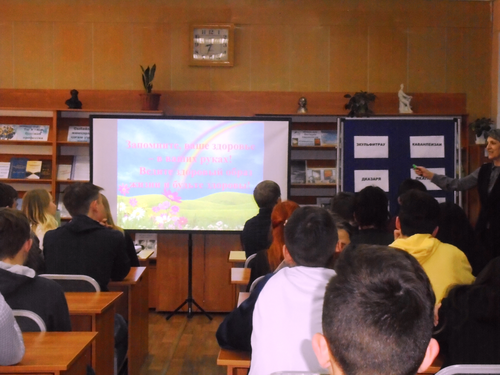 2019 жылдың 4 сәуірінде Бәйкен Әшімов атындағы Петропавл теміржол көлігі колледжінің кітапханасында кітапханашы Т.А.Таранмен «Біздің таңдауымыз – денсаулық пен өмір» атты салауатты өмір салты сағаты өткізілді.